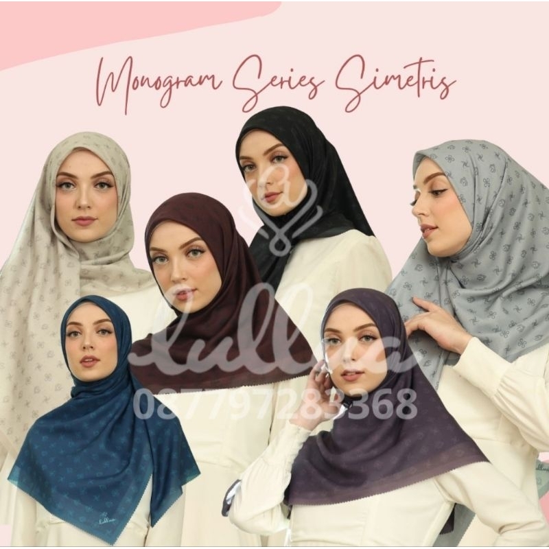 LULLUA - Monogram Simetris Scarf Voal Premium | Hijab Printing Segi Empat Motif