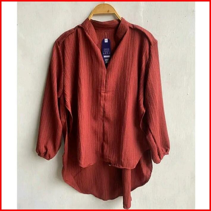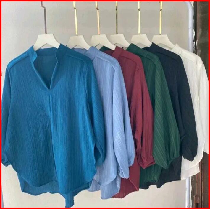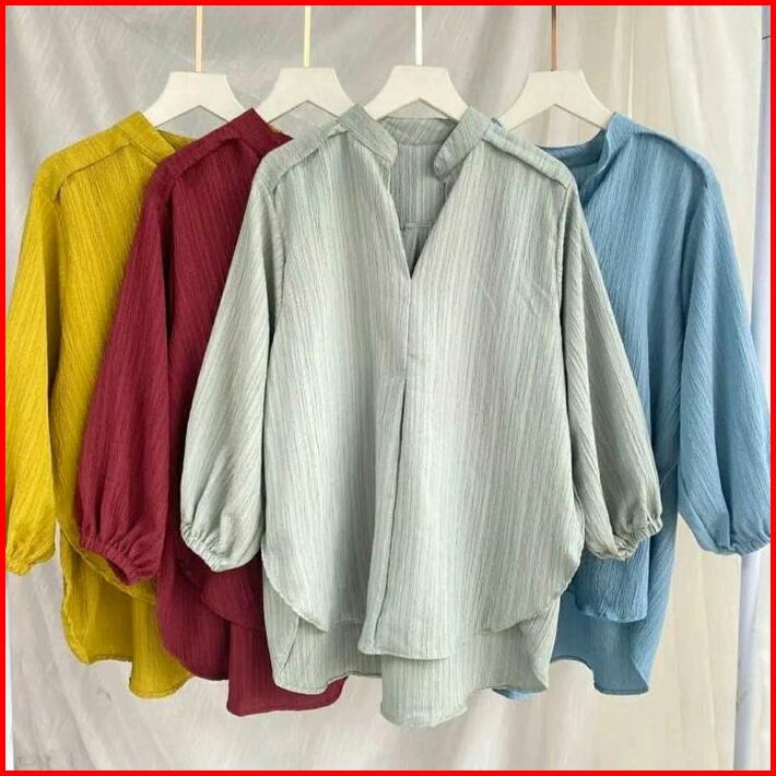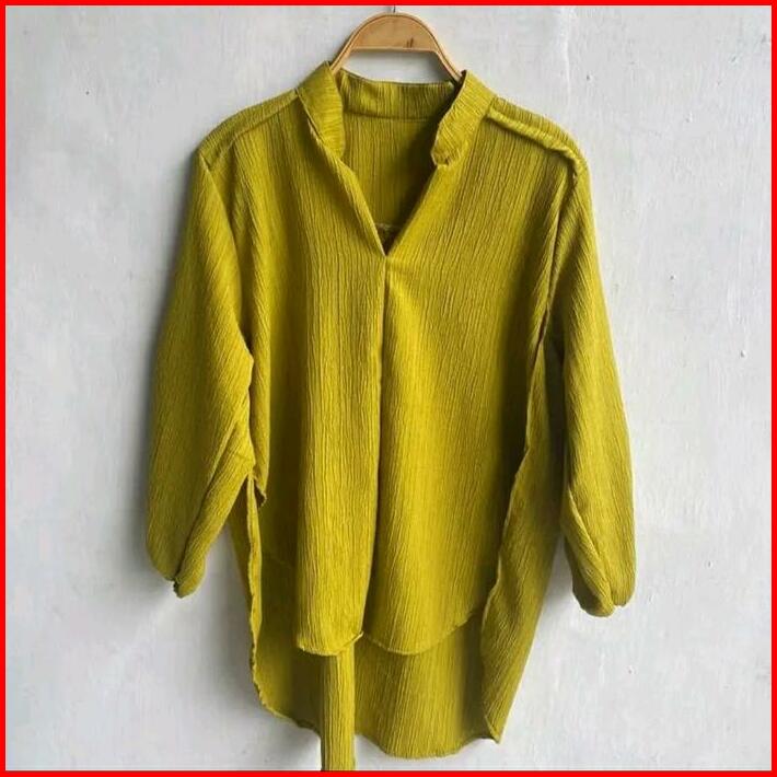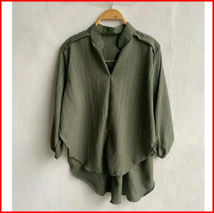 Outer Korean Style Lady Crush Livia Blouse Wanita Bahan Lady Crush Kemeja Style Korea Atasan Baju Belah Samping
