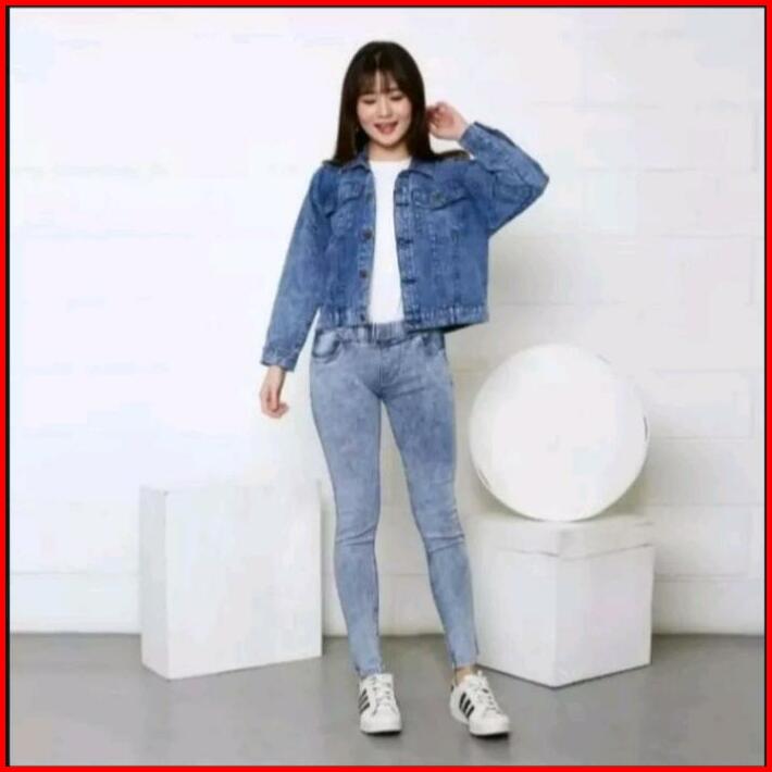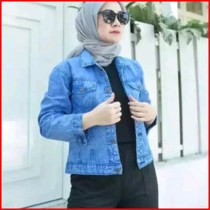 Jaket Jeans Denim Wanita Sandwash Jaket Snow Biru Dan Snow Hitam Musim Dingin Nyaman Grey