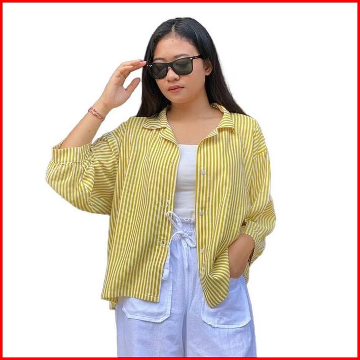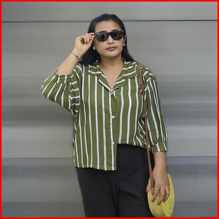 Kemeja Garis Jumbo Atasan Batwing