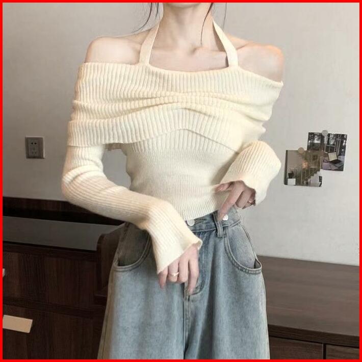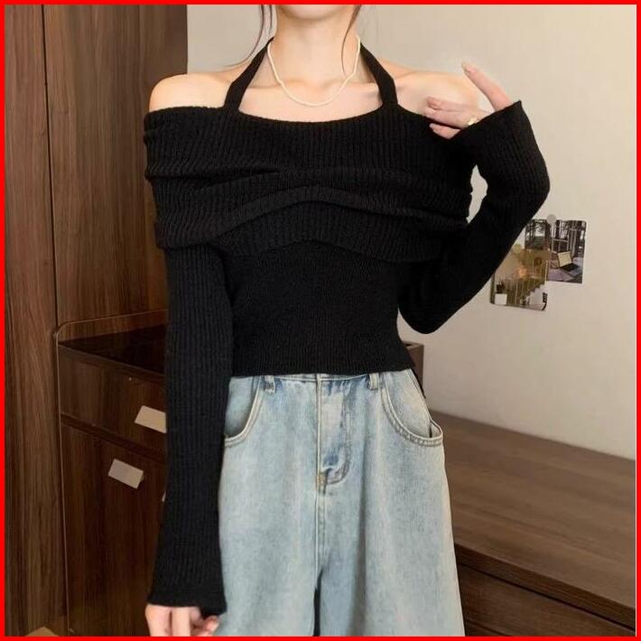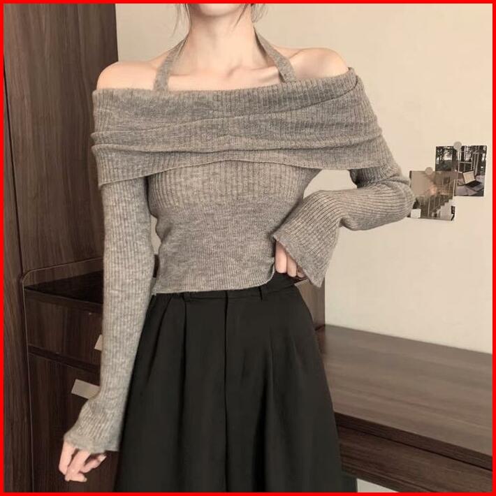Ajw Xeg Atasan Wanita Sabrina Cutt Off Tali Leher Knit Premium Baju Wanita Rib Sabrina Cutt Off Tali Leher Rajut Premium