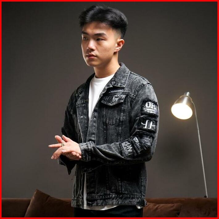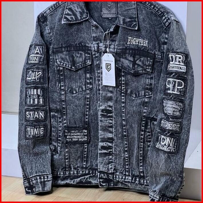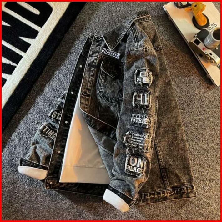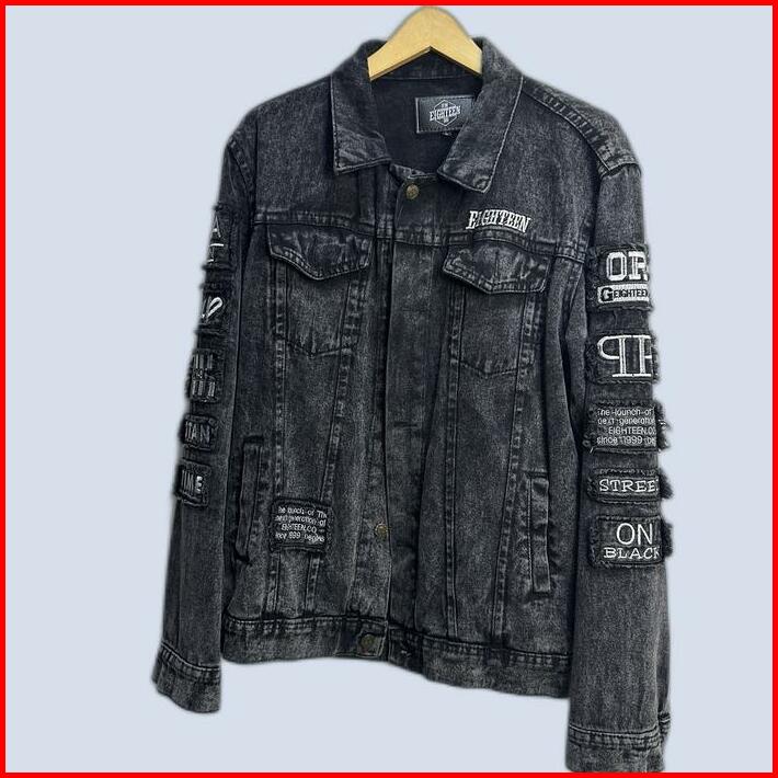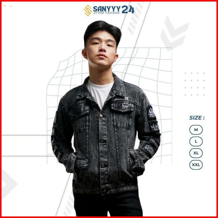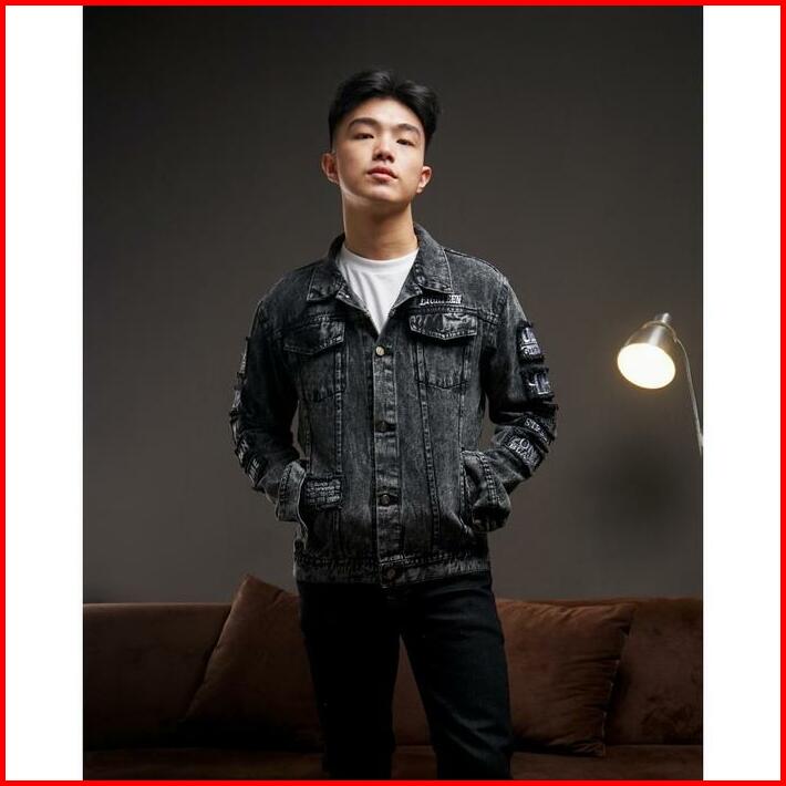 Jaket Jeans Denim Pria Motif Bordir Premium Ripped Jacket Jeans Cowok Emblem