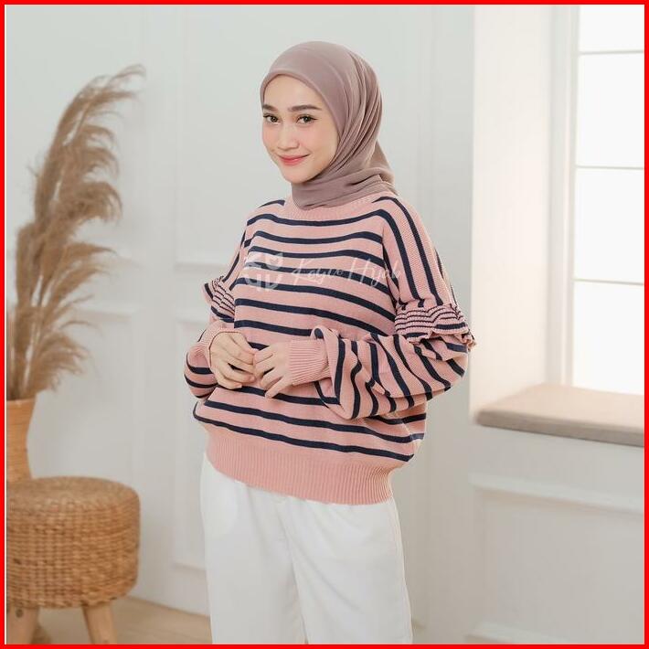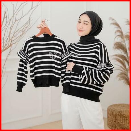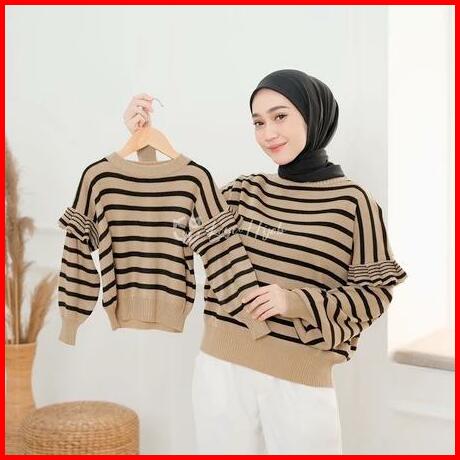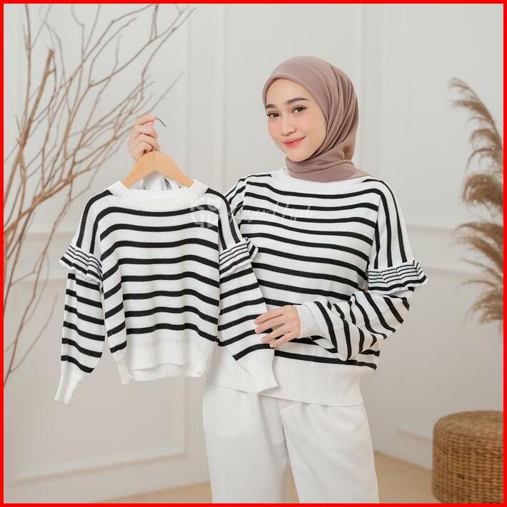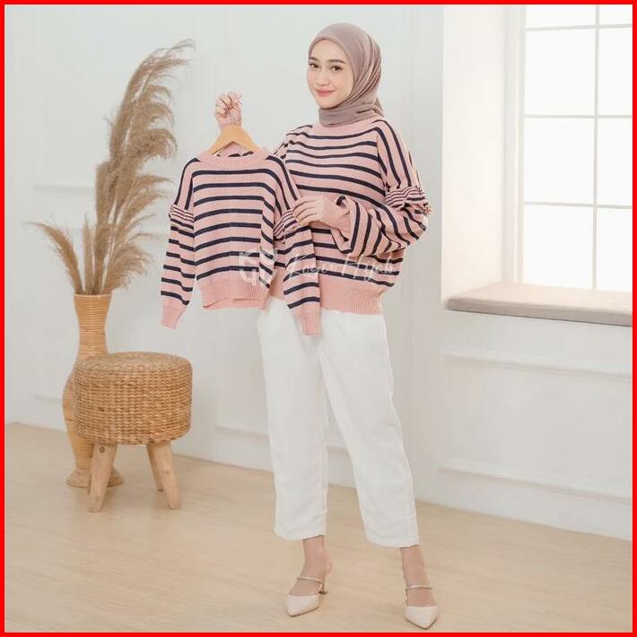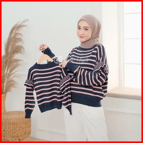Koyu Hijab Baju Atasan Rajut Stripe Couple Ibu Dan Anak