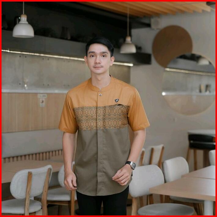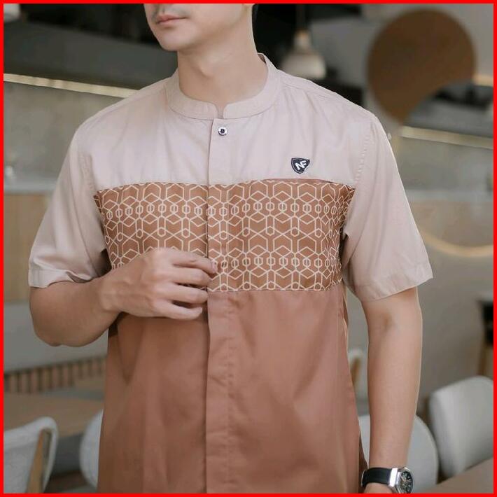 Atasan Kemko Batik Sublim Nayfar Kemeja Koko Pria Lengan Pendek Motif Sublim Katun Toyobo Premium Kurta Muslim Dewasa