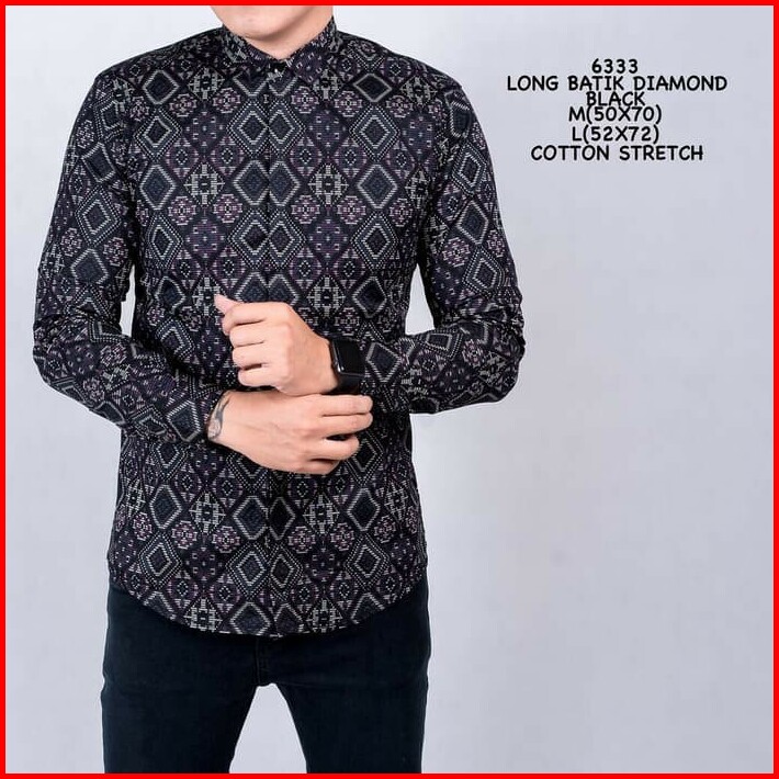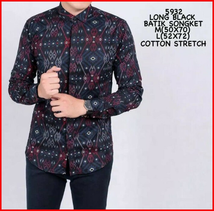 Kemeja Pria Batik Songket Hitam Lengan Panjang Batik Cowo Formal