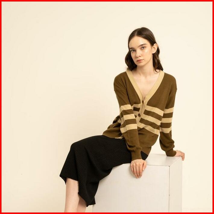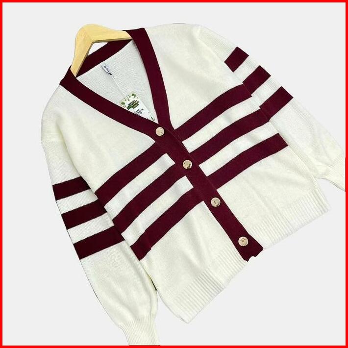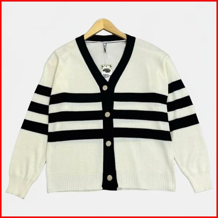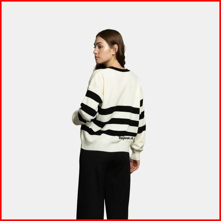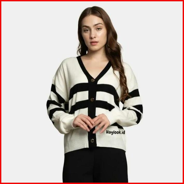 Haylook.id Meira Cardy Top Cardigan Rajut Motif Garis Baju Setrip Atasan Wanita Bahan Rajut Premium Cardy Korean Style T