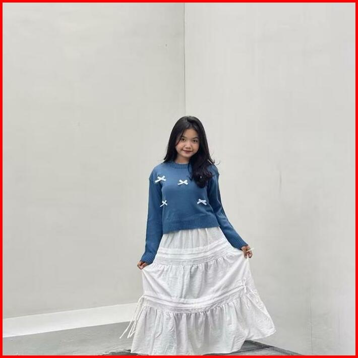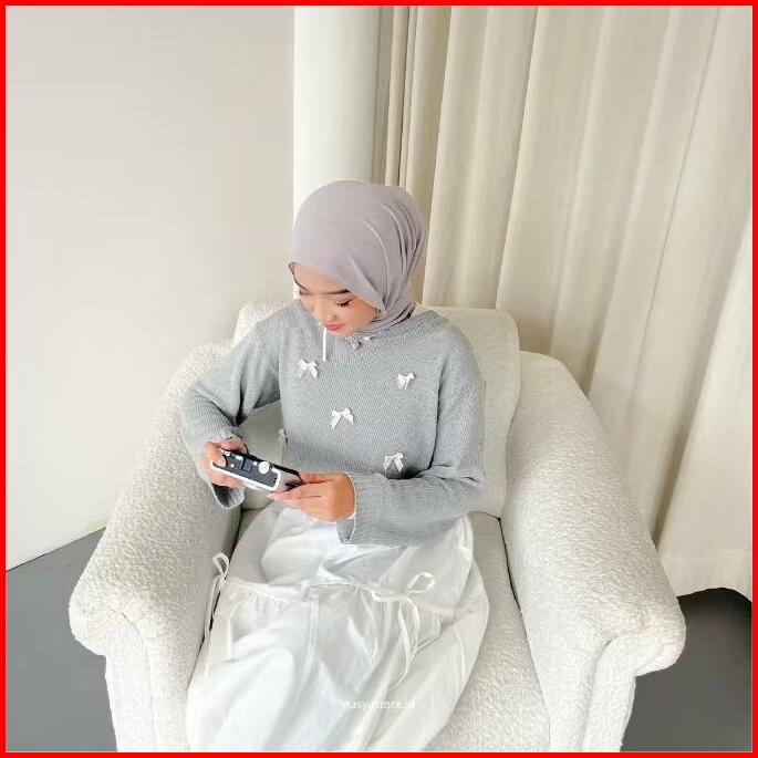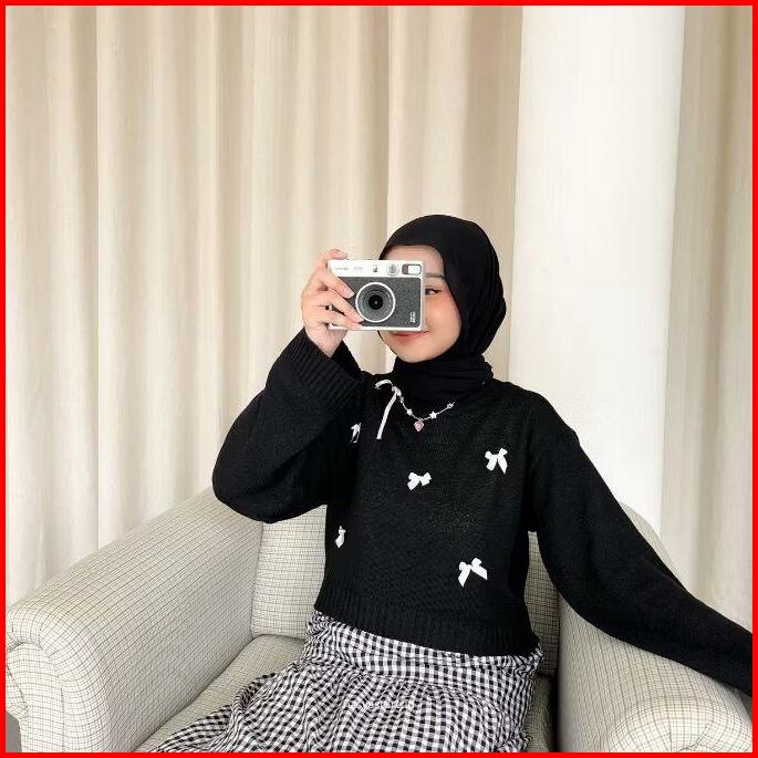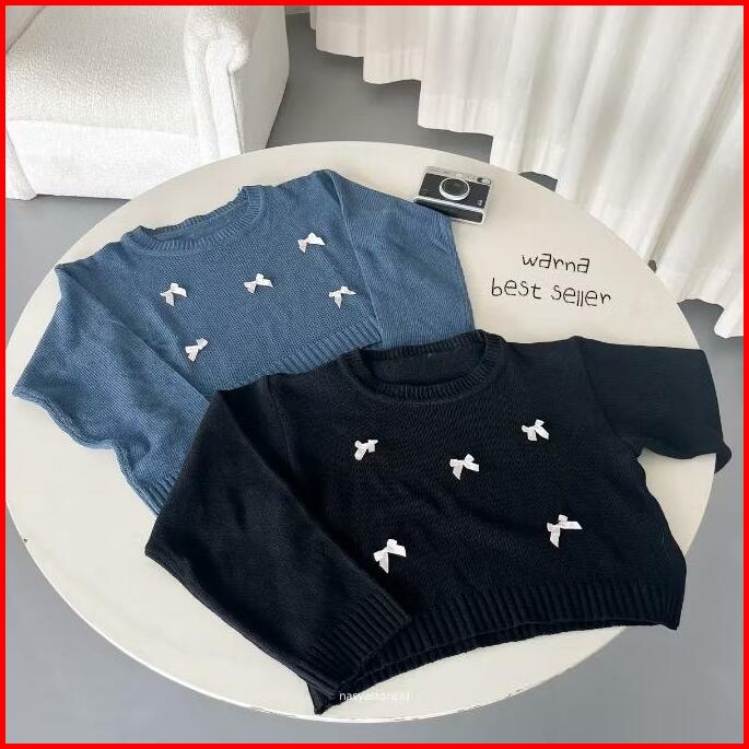 Naya Sweater Rajut Crop Atasan Baju Pita Wanita Knitwear Premium Korean Style Tebal Top