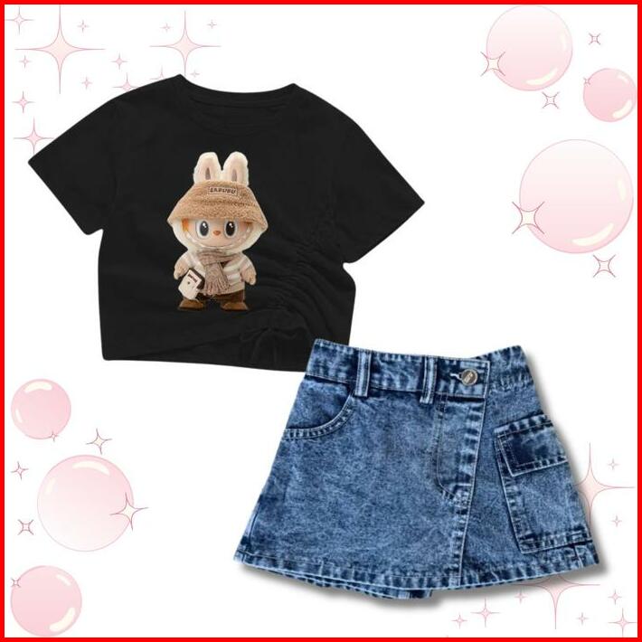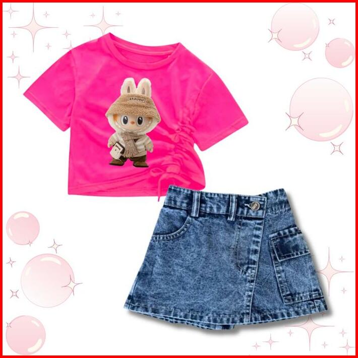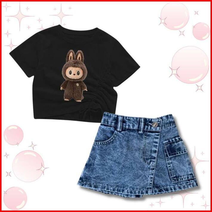 Setelan Croptop Rok Celana Jeans Anak Perempuan
