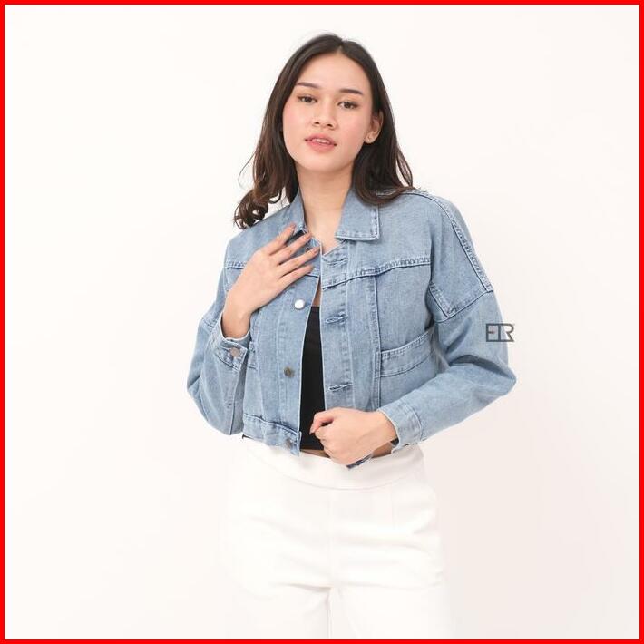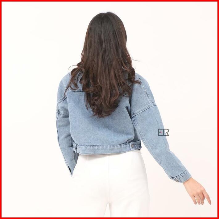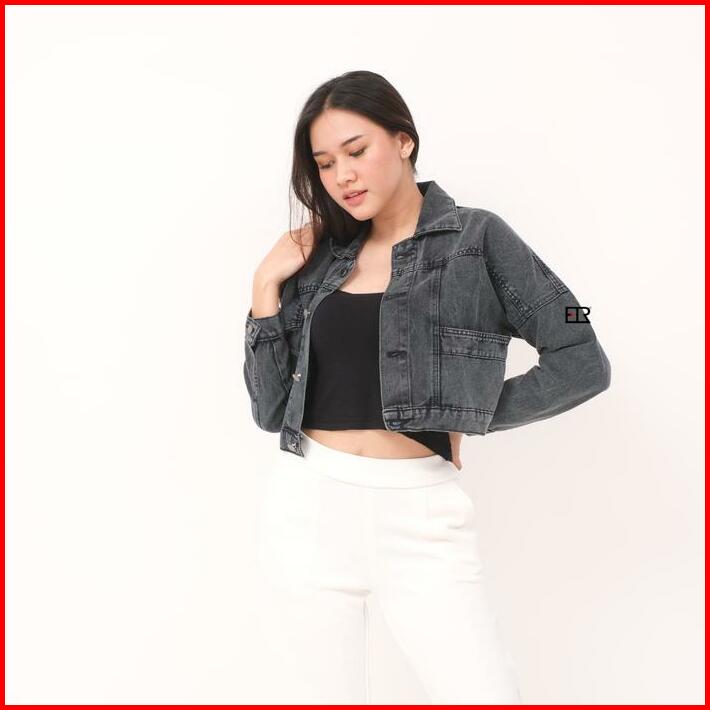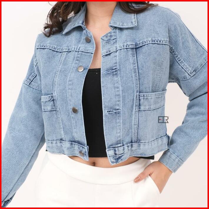 Jaket Crop Jeans Oversize Wanita Premium Model Saku Terbaru