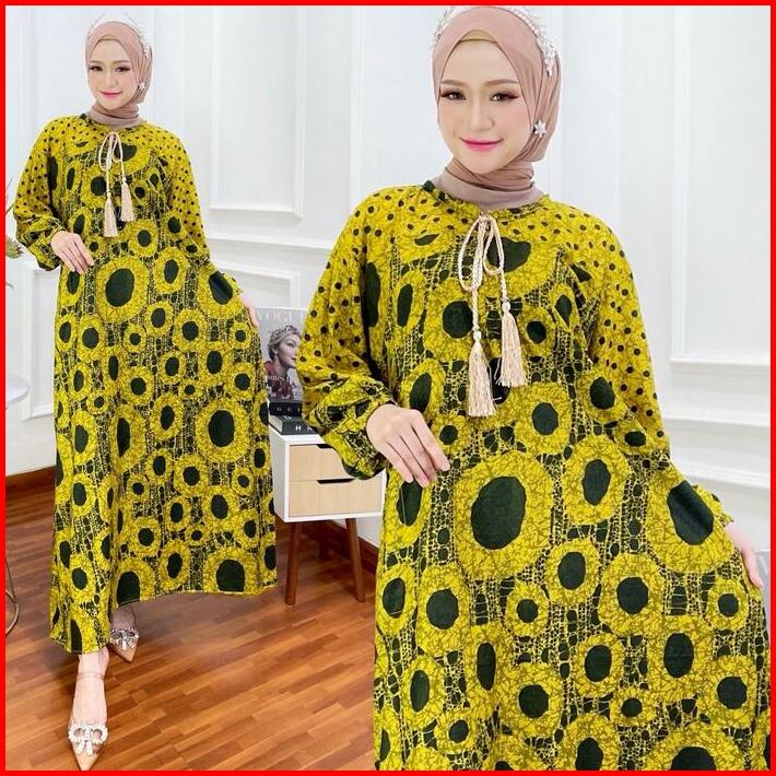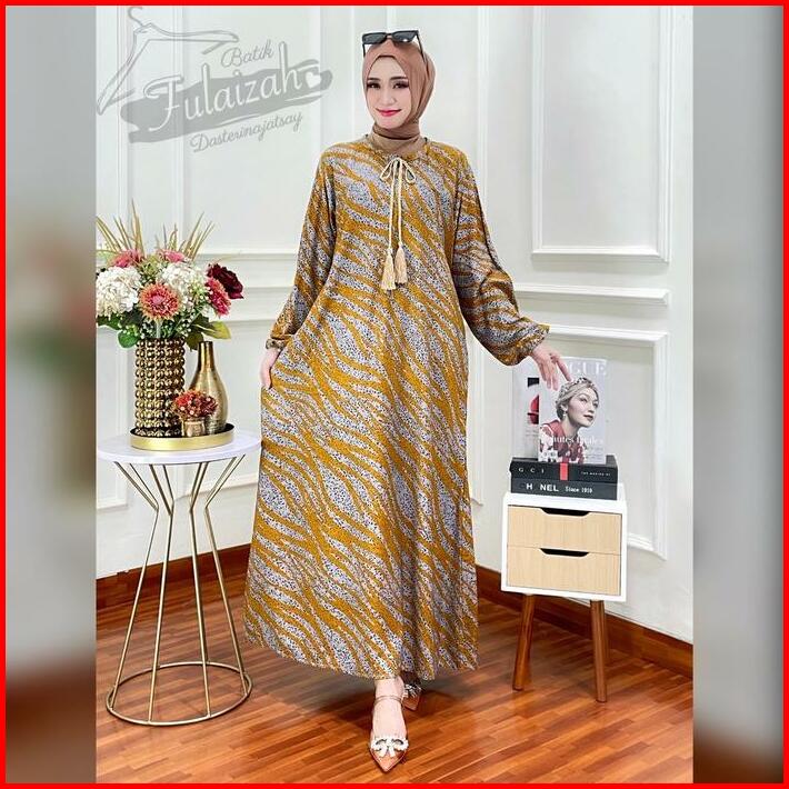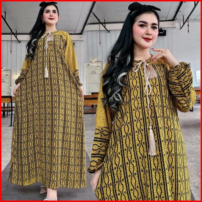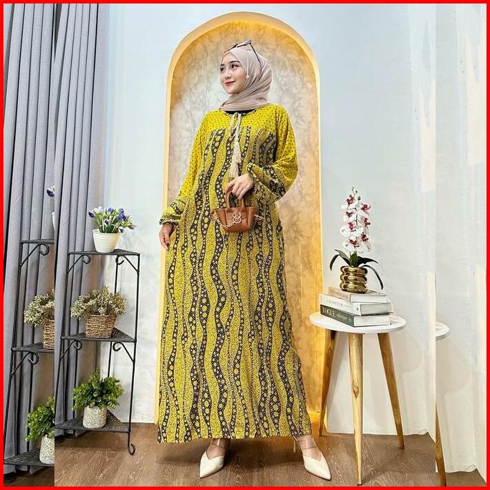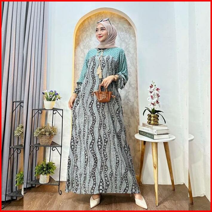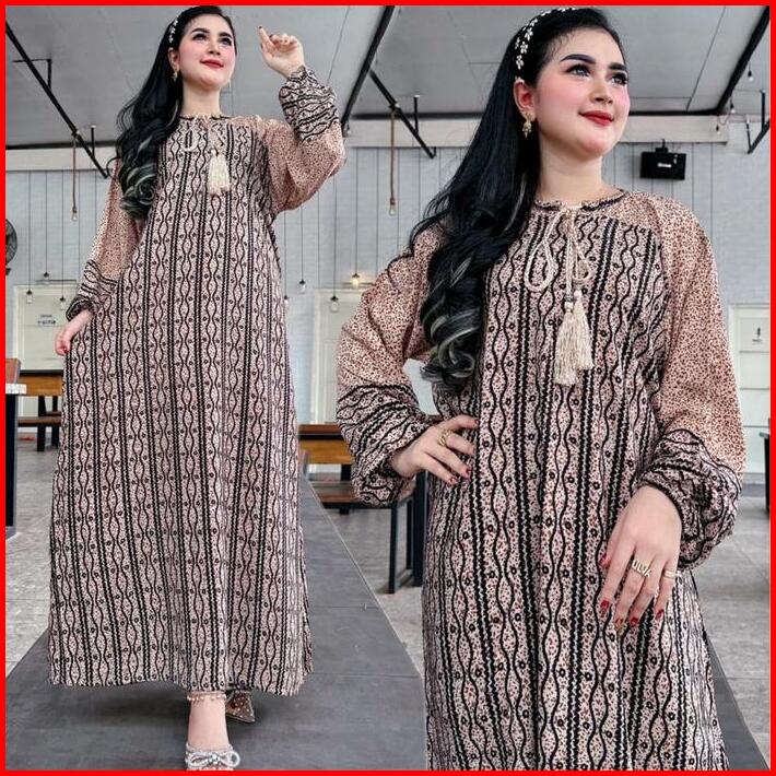 Gamis Batik Salur Kombinasi Rayon Tebal Premium Muslim Panjang Wanita Dress