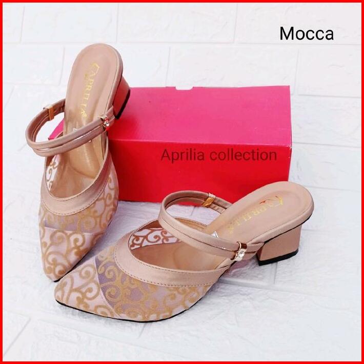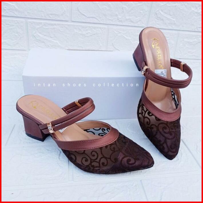 Aprilia Sandal Wanita Terbaru Heels Brukat Pesta Hak Tahu 5cm Sepatu Bustong Brukat Wanita Kekinian Heels Brukat Pesta K