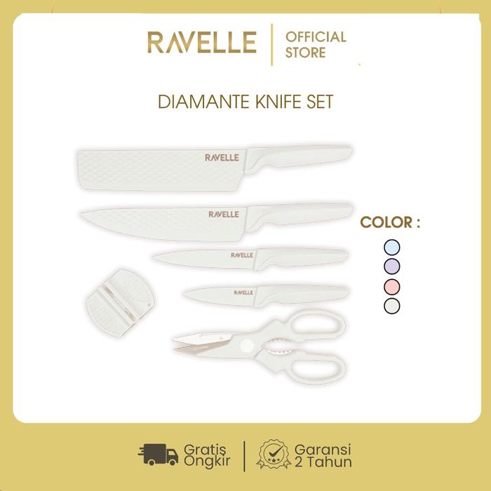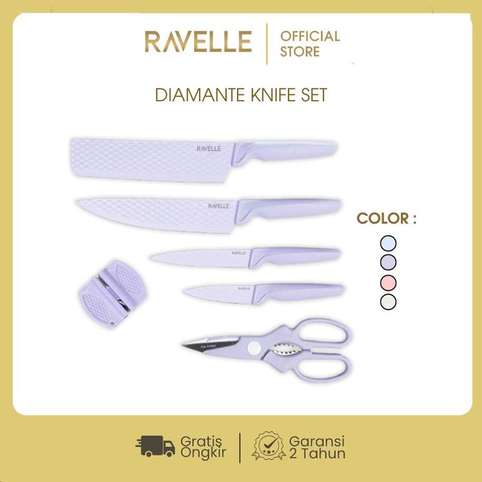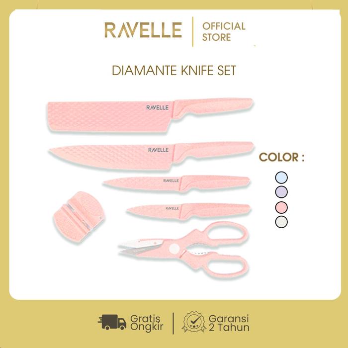 Terlaris RAVELLE Pisau Set Diamante Knife Set 6 in 1 Set - Pisau Dapur Anti Lengket - Diamante-Baby Blue Promo