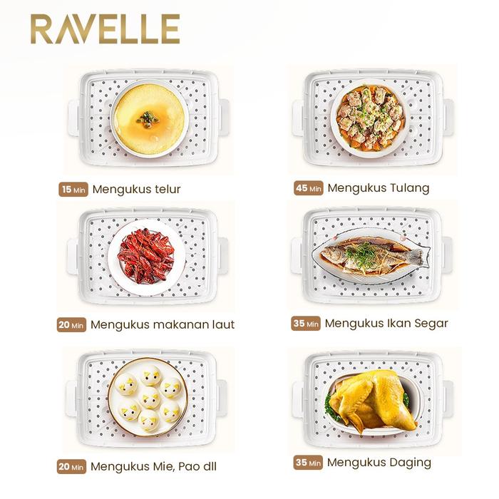 Terlaris RAVELLE Electric Food Steamer 15L - Pengkukus Listrik Multifungsi Promo