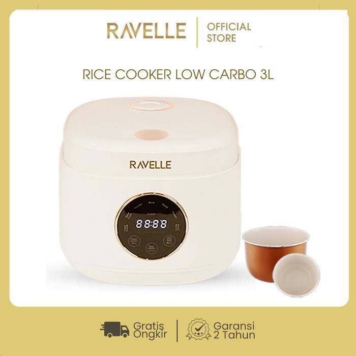 Terlaris RAVELLE Rice Cooker Digital Low Carbo 1.2 Liter Nasi (3 Liter) -Penanak Nasi - Low Watt - Cream Glod Promo