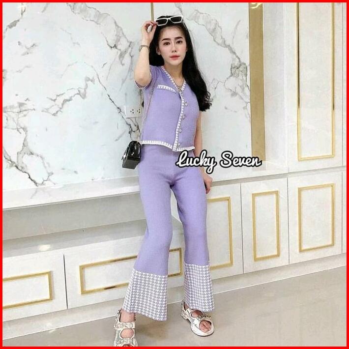 Setelan Wanita Rajut Premium Import Tebal Bangkok Terbaru By Loowear Atasan Baju Celana Kulot Nyaman Panjang