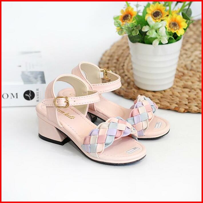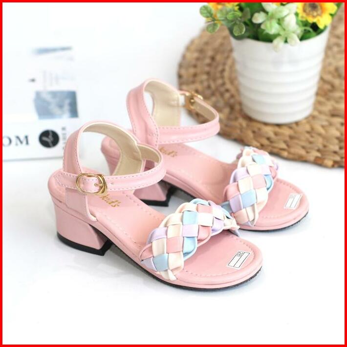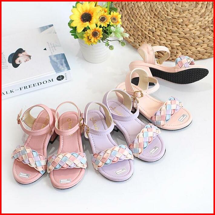 Sepatu Sandal Pesta Anak Perempuan Hak Tahu Motif Kepang
