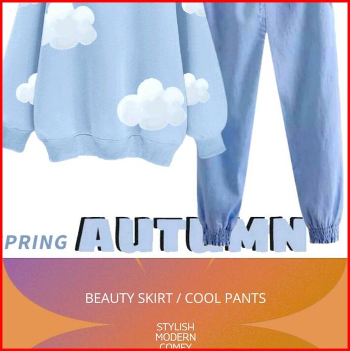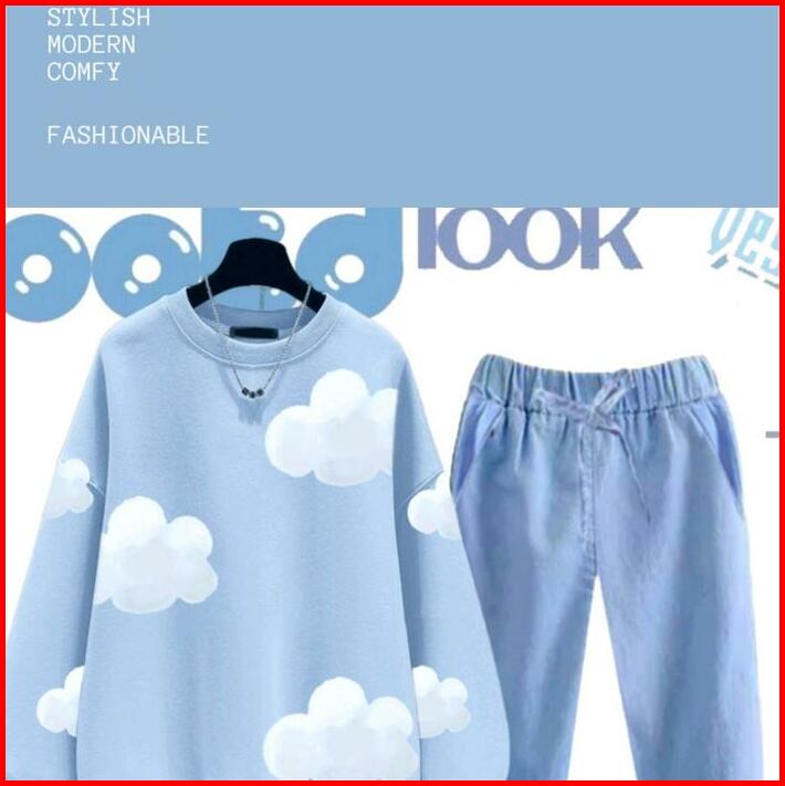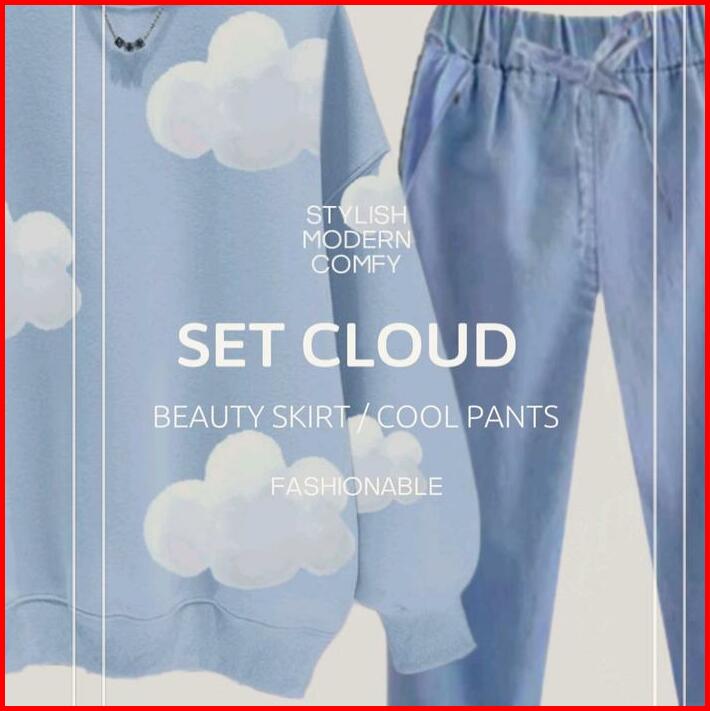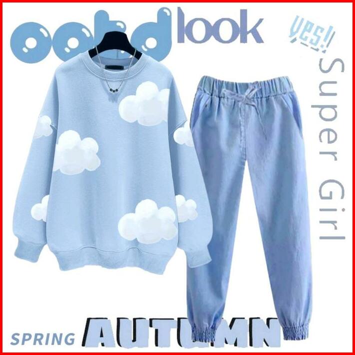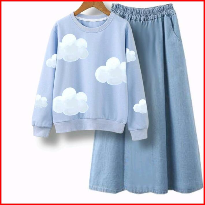 Sweater Anak Remaja Perempuan Cloud Awal Setelan Celana Rok Soft Jeans Fashion