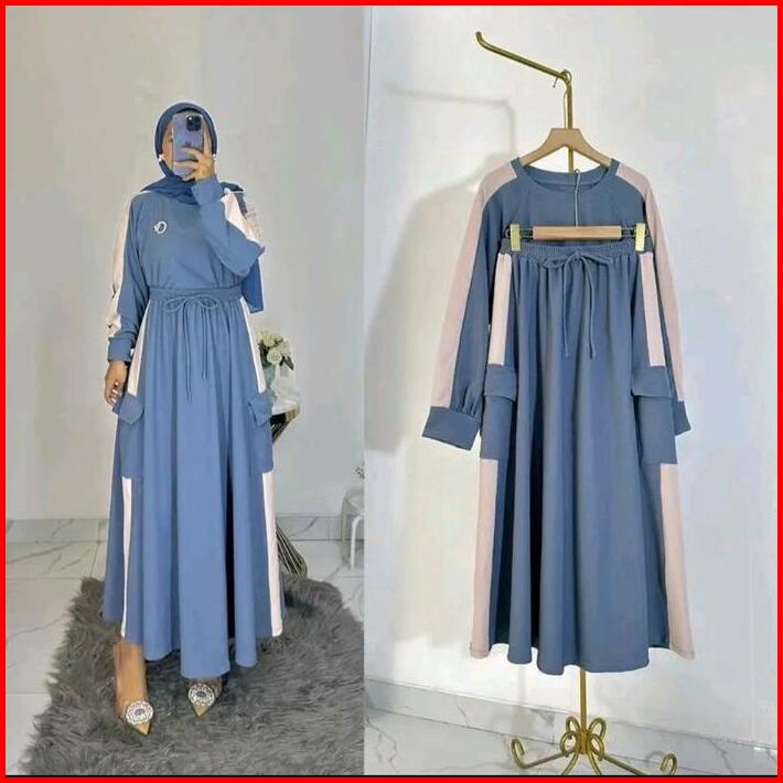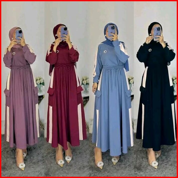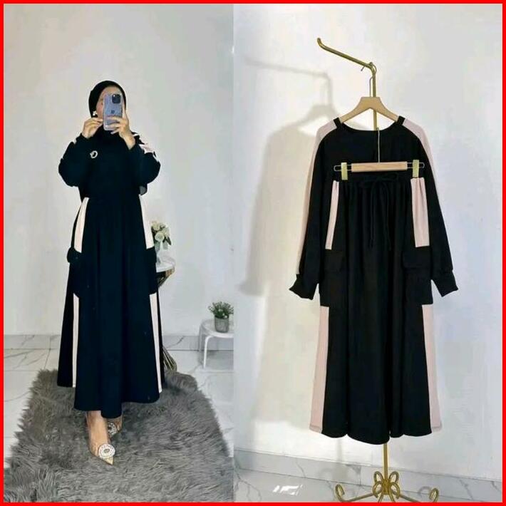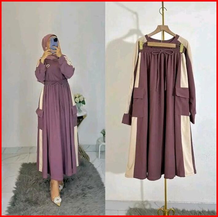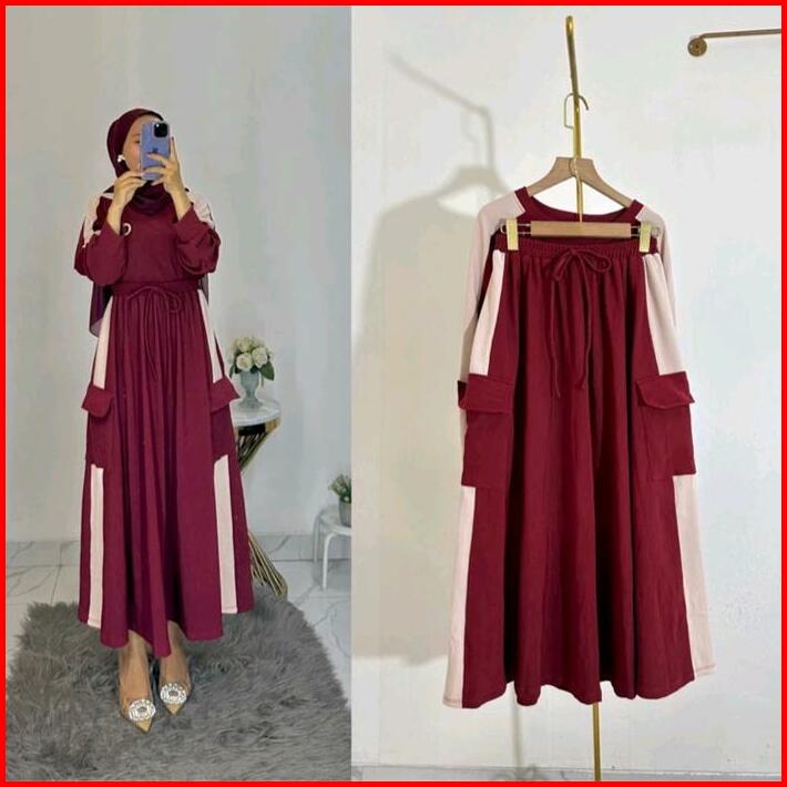 Melissa Set Rok Cargo Bahan Cringkle Wanita Muslim Lengan Panjang Crinkle Airflow Gamis Setelan Celana Fit Baju Dewasa K