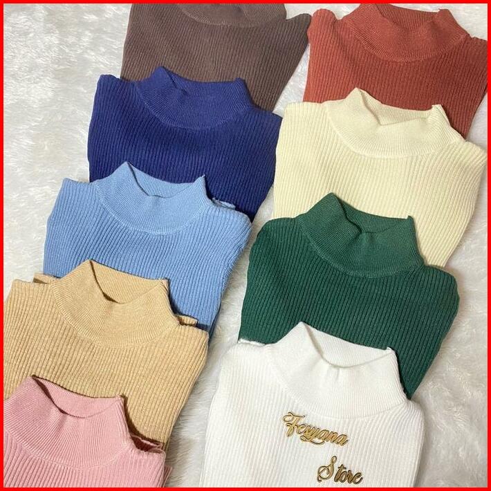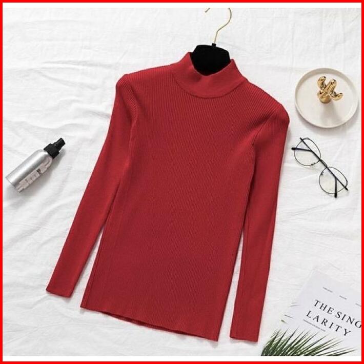 Atasan Rajut Wanita Kerah Baju Rajut Wanita Kaos Wanita Lengan Panjang Manset Baju