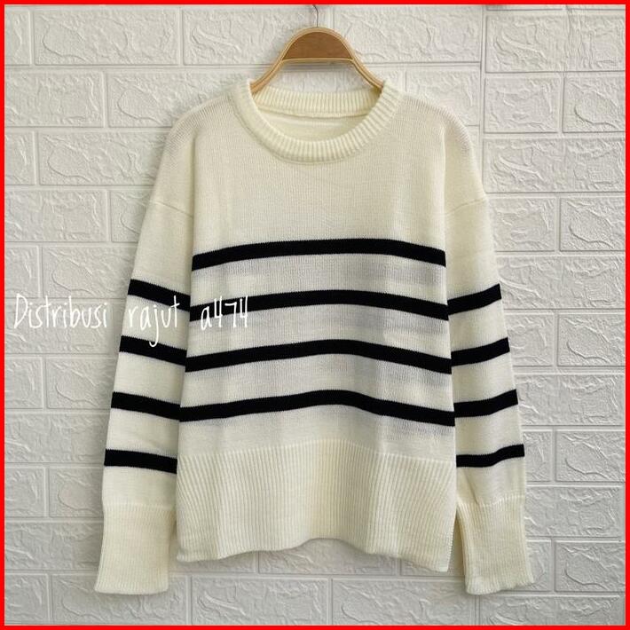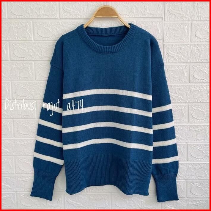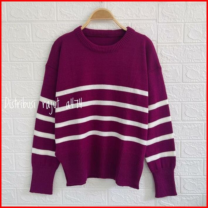 Ayu Tt Sweater Rajut Oversize Korea Motif Stripe Lengan Panjang Wanita Atasan Nyaman Baju Garis