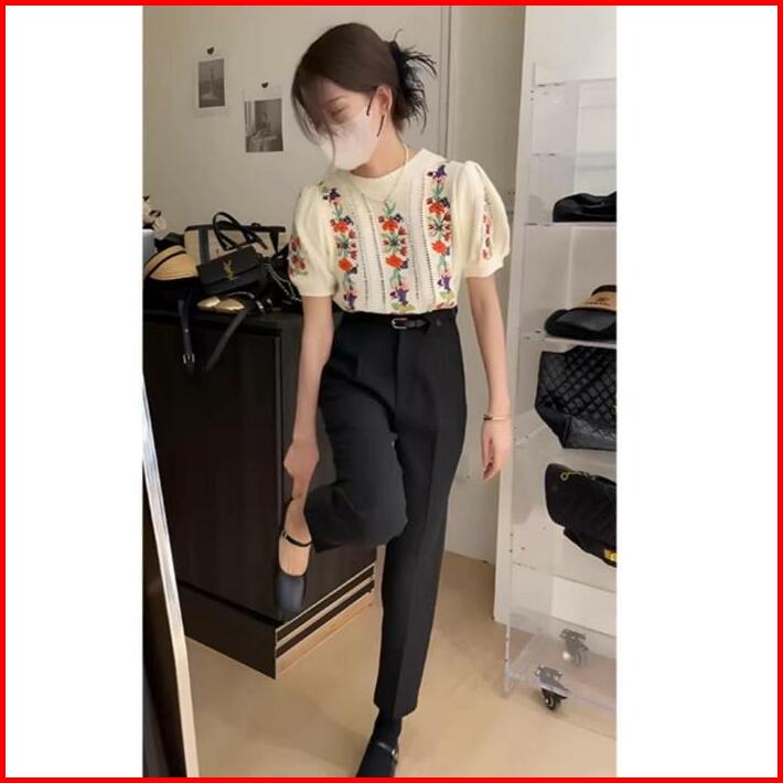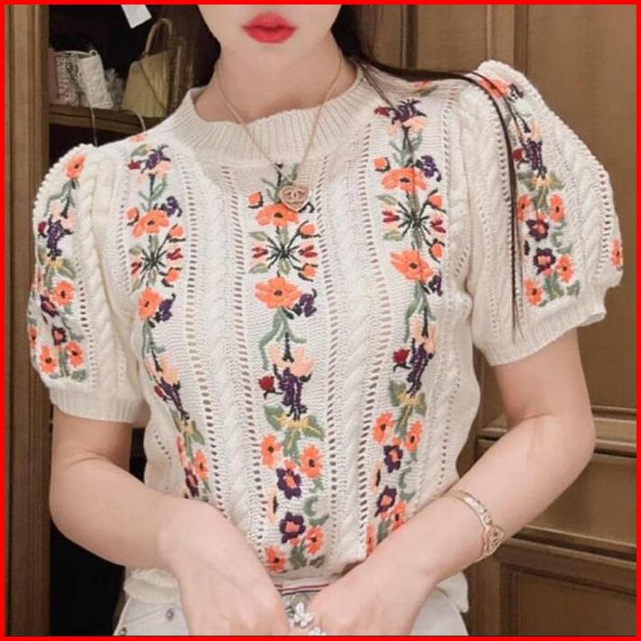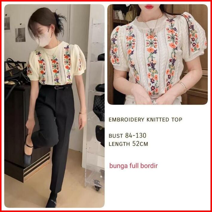Lorra Embroidery Knitted Top Fit Size M-xl Fashion Atasan Wanita Bahan Rajut Knit Knitwear Bordir Bunga Casual Kasual Ou