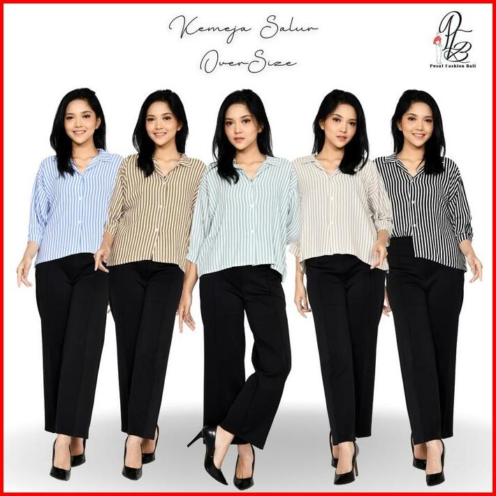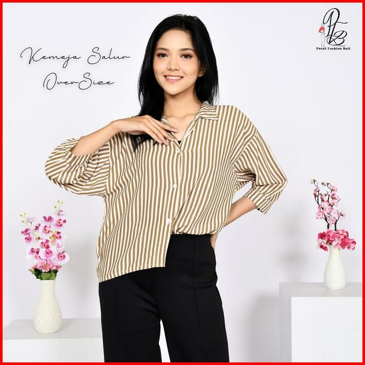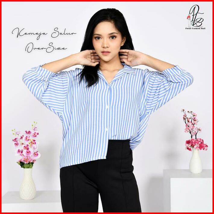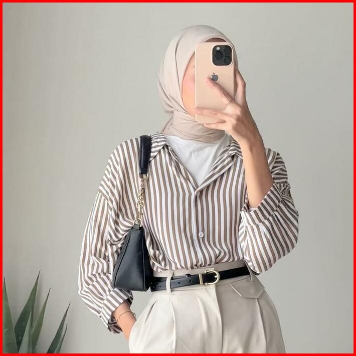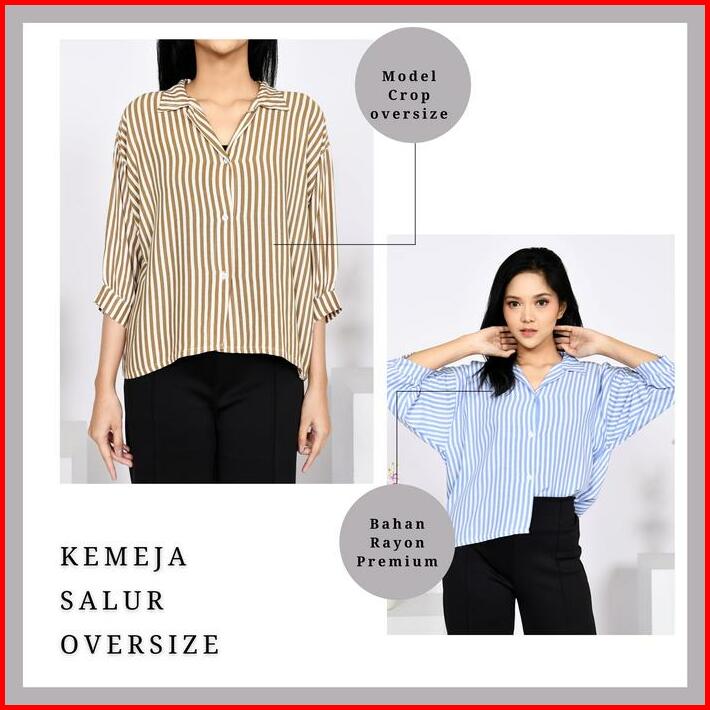 Kemeja Wanita Oversize Crop Motif Salur Garis Terbaru Kekinian Style Korea