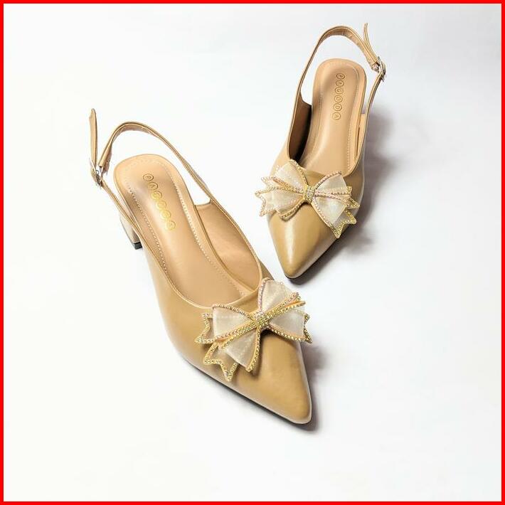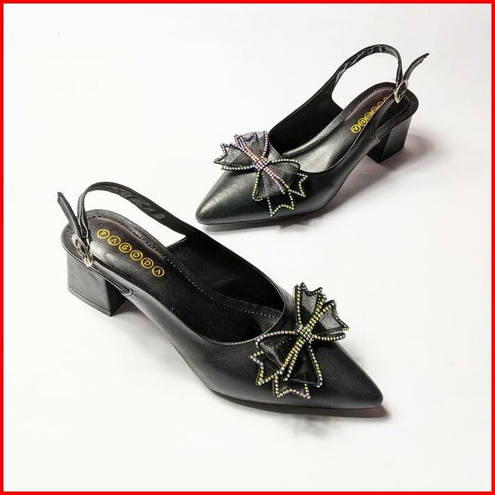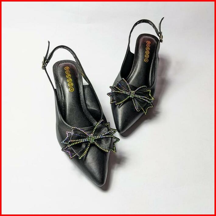 Zoya Sepatu Wanita Sepatu Hak Tahu Variasi Pita Premium Hitam Sandal