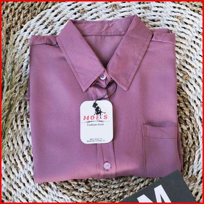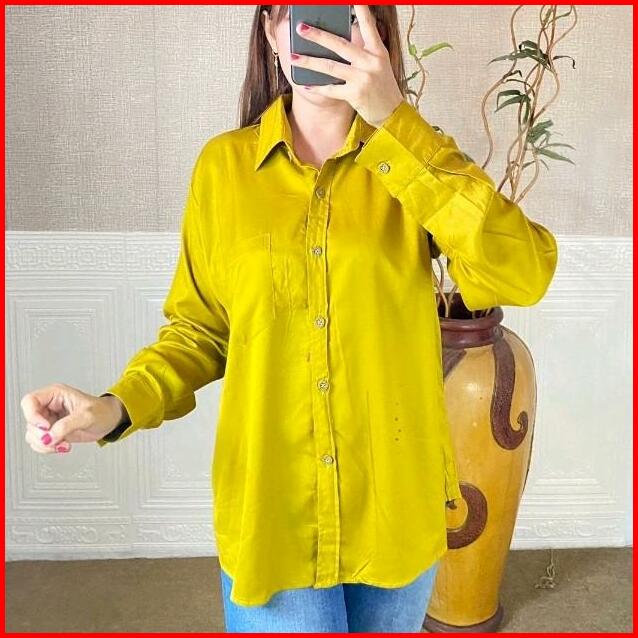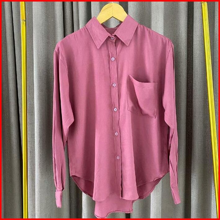 Kemeja Wanita Motif Polos Bahan Rayon Twill Premium Atasan Wanita Kekinian Oversize Jumbo Basic Panjang