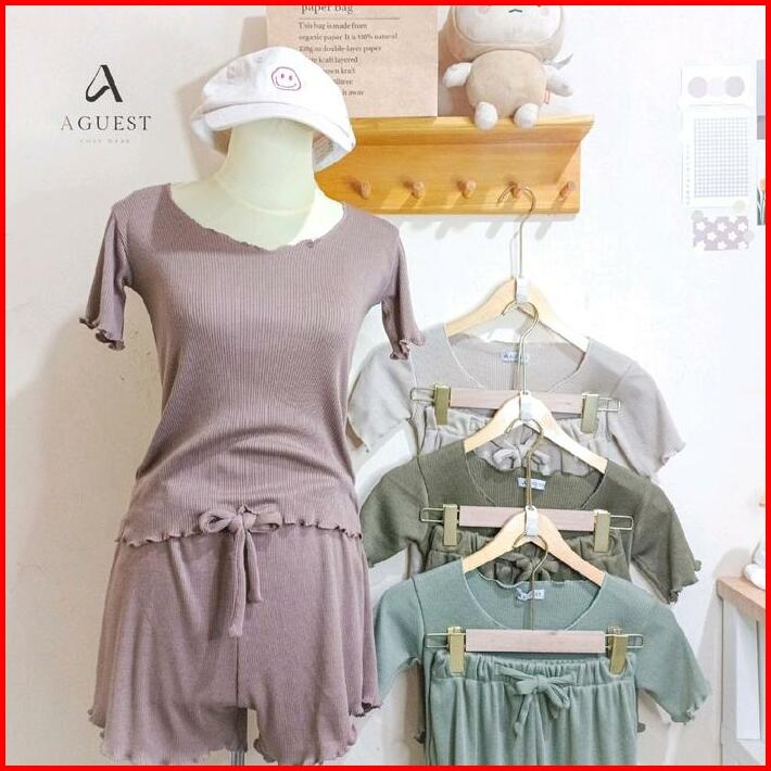 Aguest Yoona One Set Wanita Dewasa Slimfit Setelan Baju Tidur Pendek Body Fit Knit Sexy Korean Style Baju Setelan Wanita