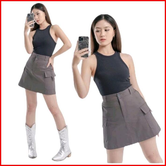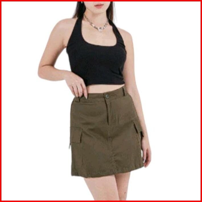 Rok Cargo Wanita Cargo Skirt Mizel Skirt Celana Pendek Wanita Panjang Hitam Casual Karet Formal Santai Ritsleting Beige