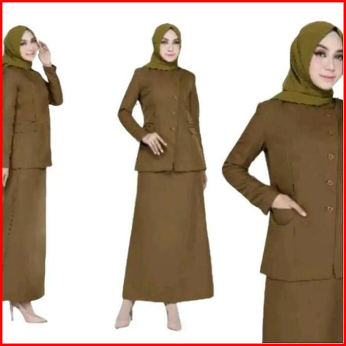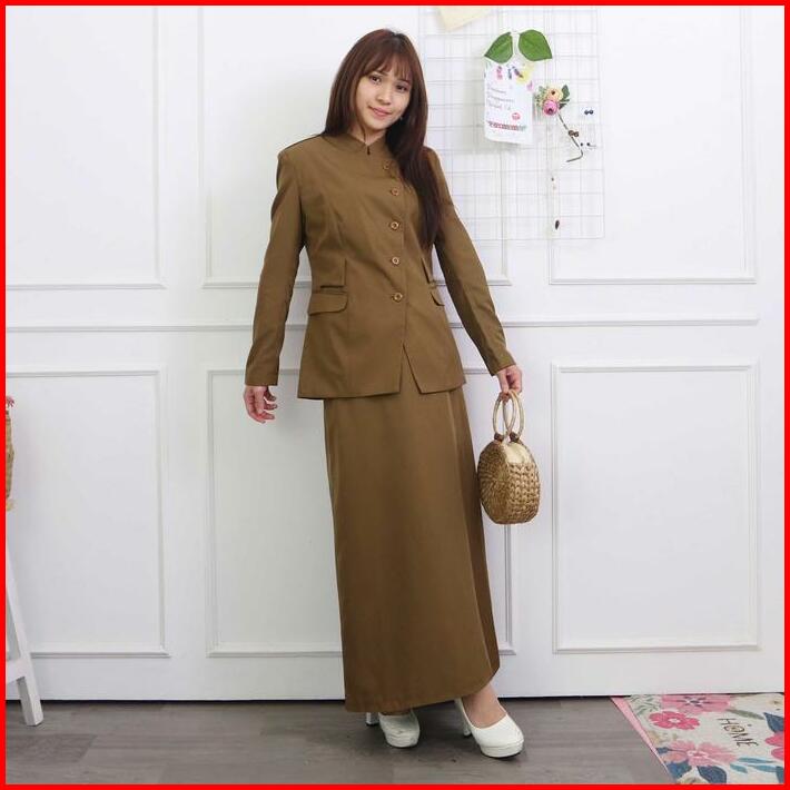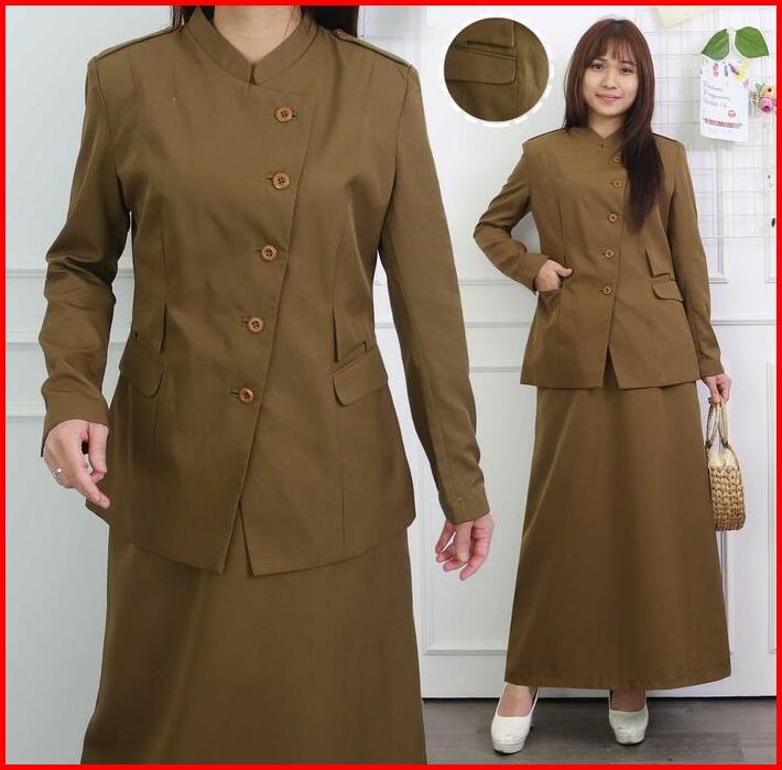 Seragam Pemda Kerja Dinas Khaky Tua Kancing Miring Kantong Double Set Rok A Celana Panjang Rok Span Bahan Katun Free Hij