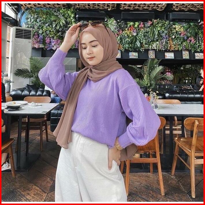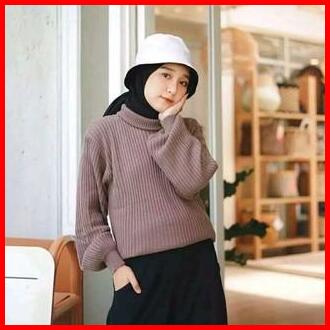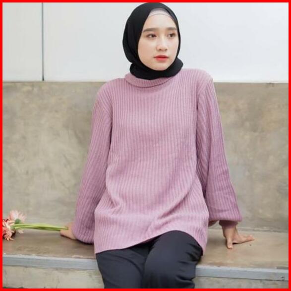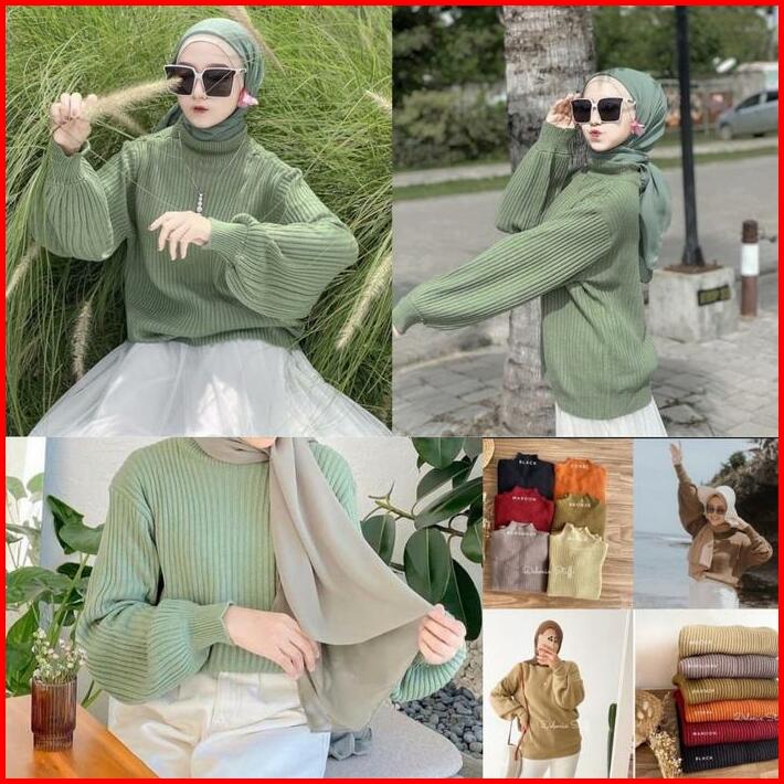 Arumi Bayoneta Sweater Turtlenek Outer Tangan Balon Sweater Blouse Rajut Tangan Balon Atasan Rajut Baju Wanita Oversize