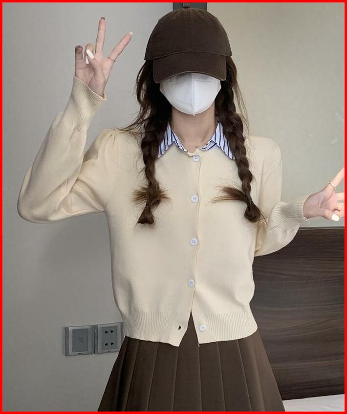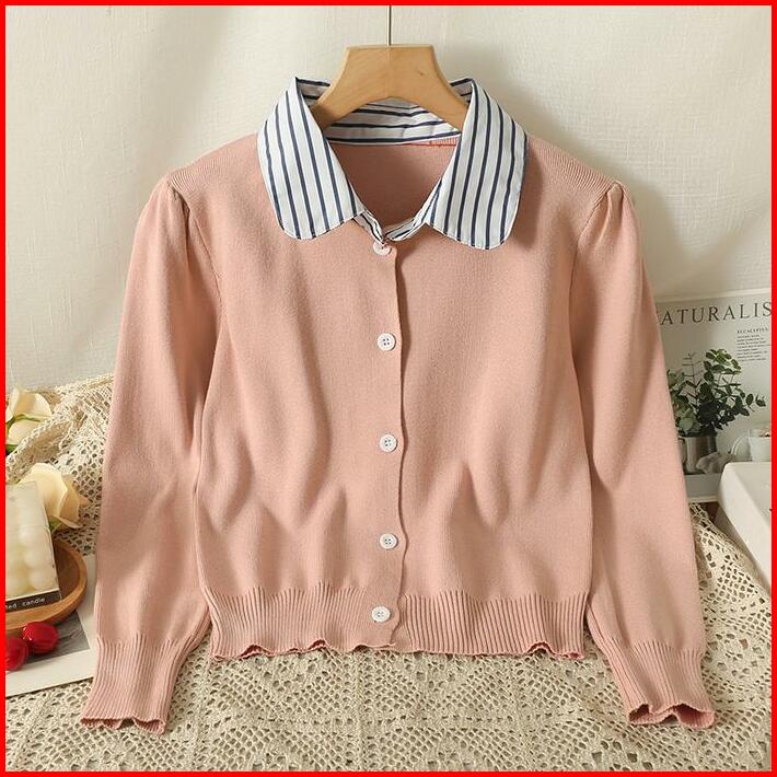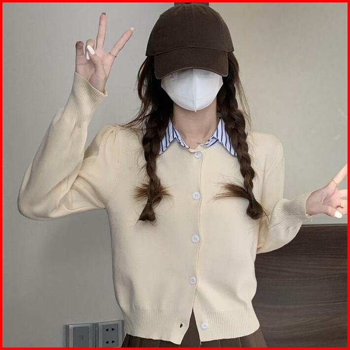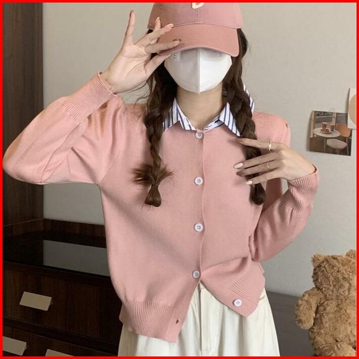 Tteuda Cardigan Kerah Polos Lengan Panjang Kardigan Rajut Kekinian Baju Atasan Wanita Terbaru Knit Premium