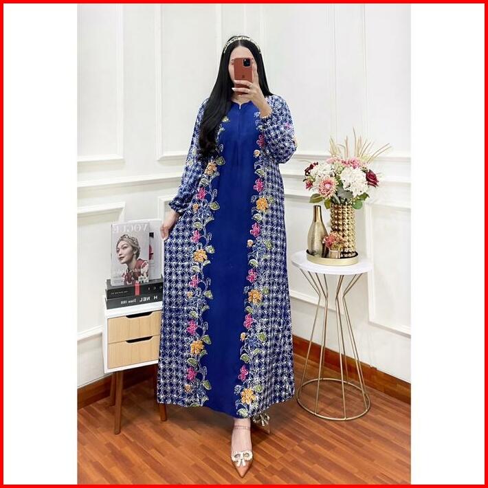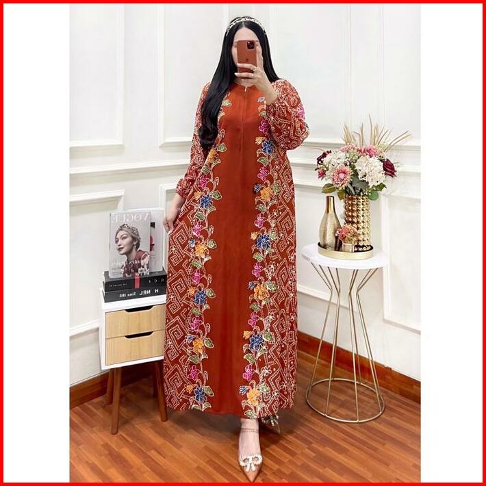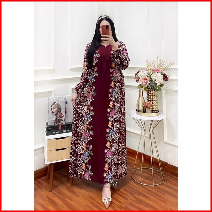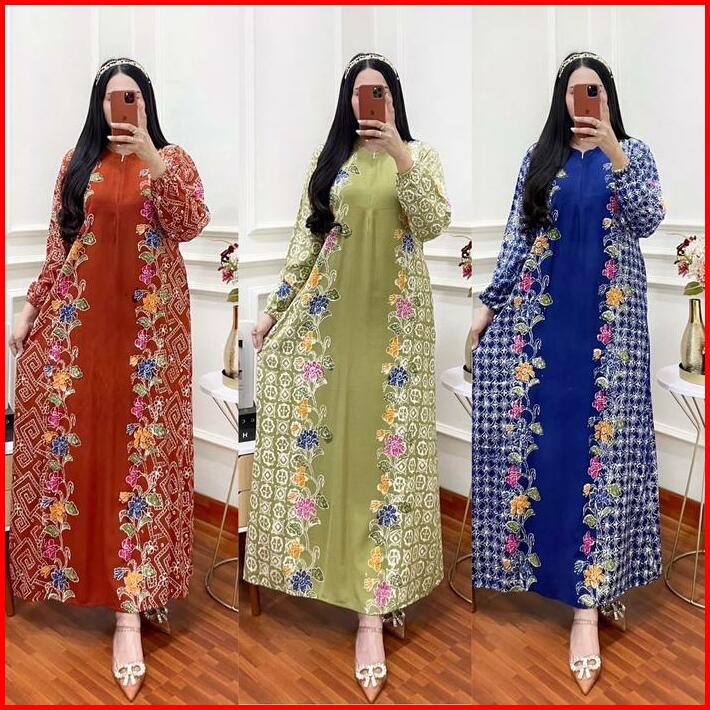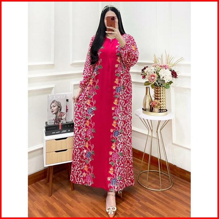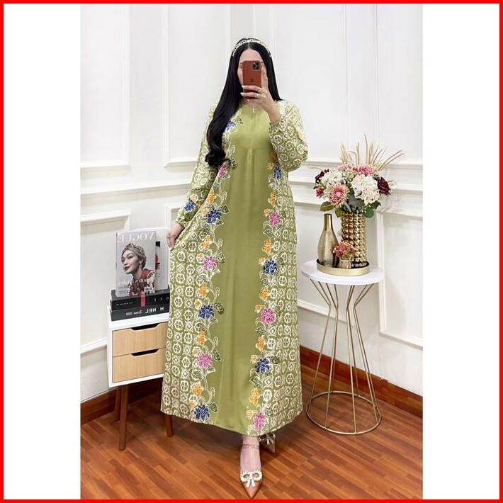 Gamis Rayon Batik Cap Pekalongan Motif Bunga Mekar Busana Muslim Dress Wanita Gamis Motif Kantong