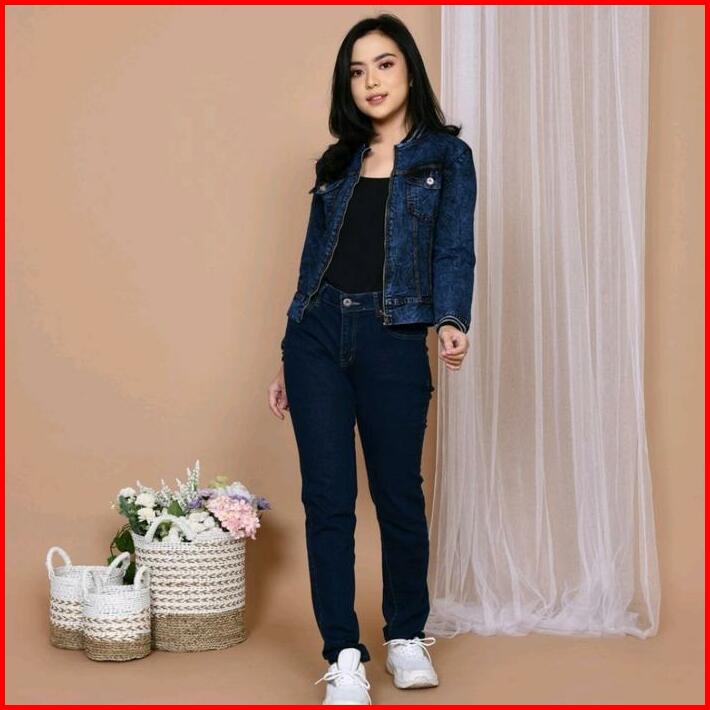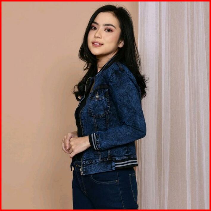 Jaket Jeans Wanita Terbaru Jumbo Bomber Snow Resleting Viral Murah Original Denim Stretch Cewek Tangan Panjang Outer