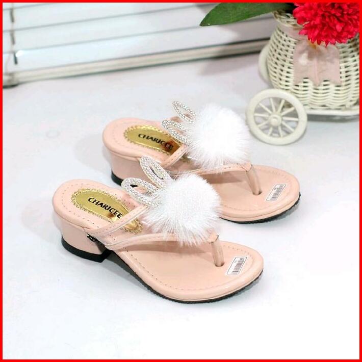 Sandal Anak Perempuan Hak Jepit Mika Bulu Pita Wl 44 Fashion Kaki Sepatu Sepatu Pesta