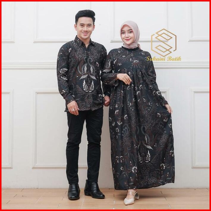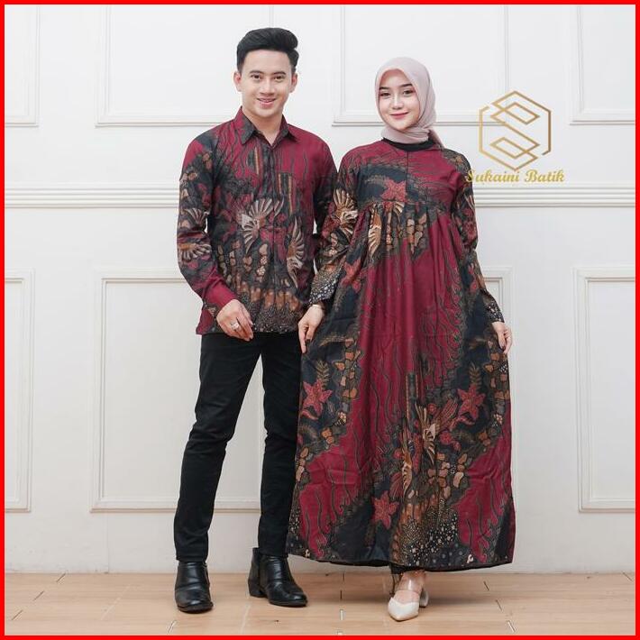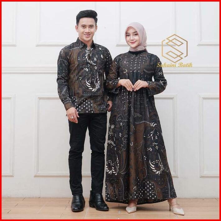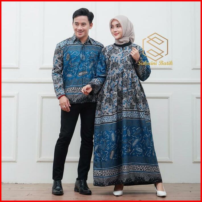 2 Baju Sepasang Couple Batik Modern Sarimbit Gamis Dan Kemeja Baju Kondangan Pasangan Muslim Dress Keluarga Lebaran Pest