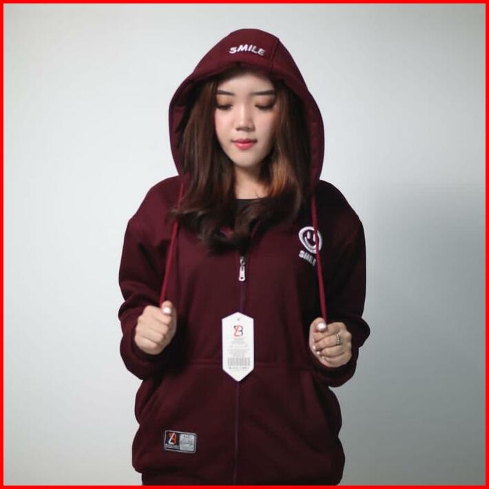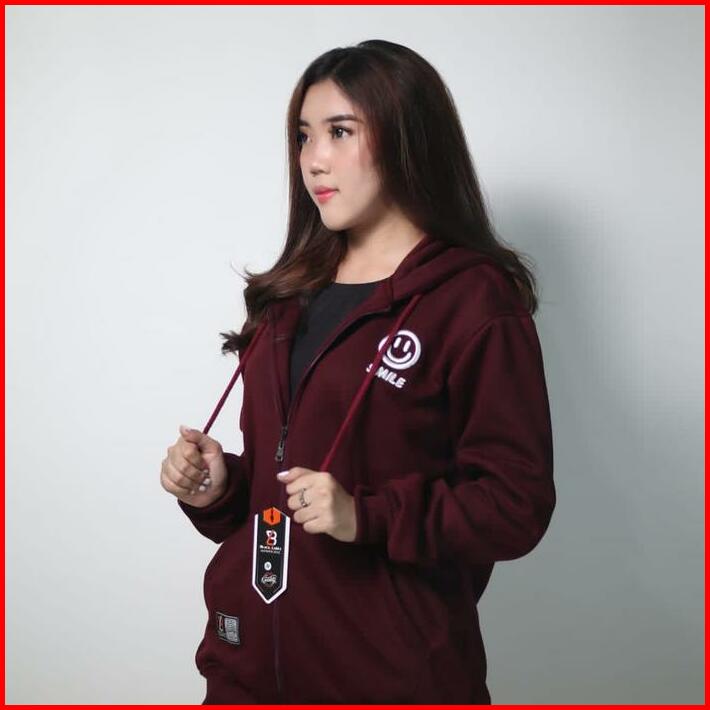 Hoodie Zipper Unisexs Smile Bordir 3d Timbul Distro Unisex Pria Wanita
