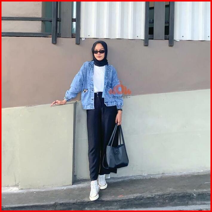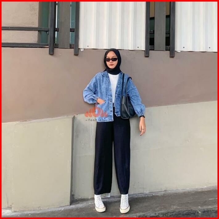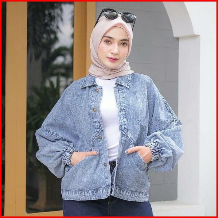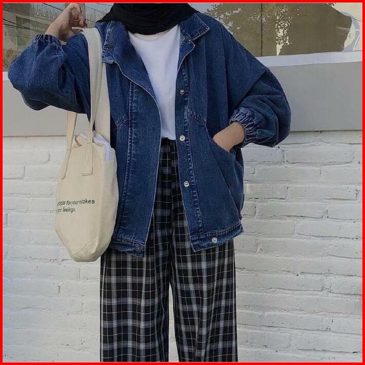 Wow-lalita Jaket Jeans Oversize Kancing Panjang Denim Wanita Baju