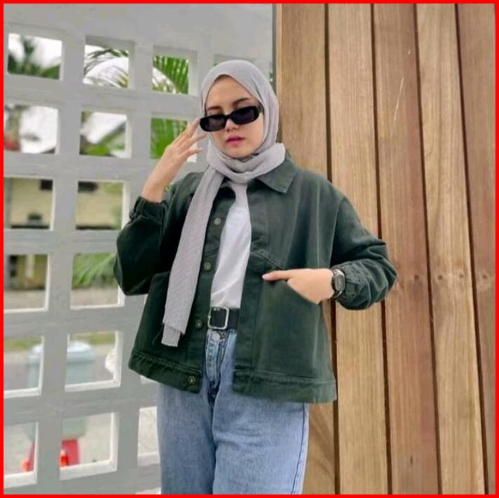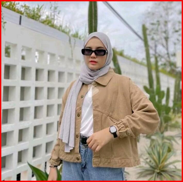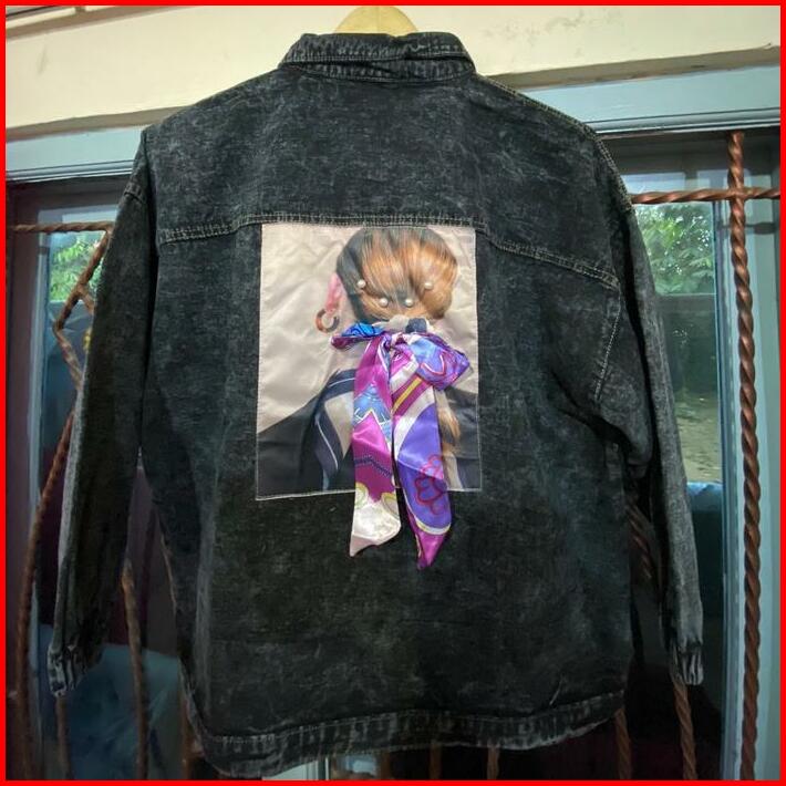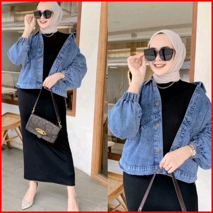 Jaket Jeans Denim Vintage Lengan Kerut Wanita Ld 120