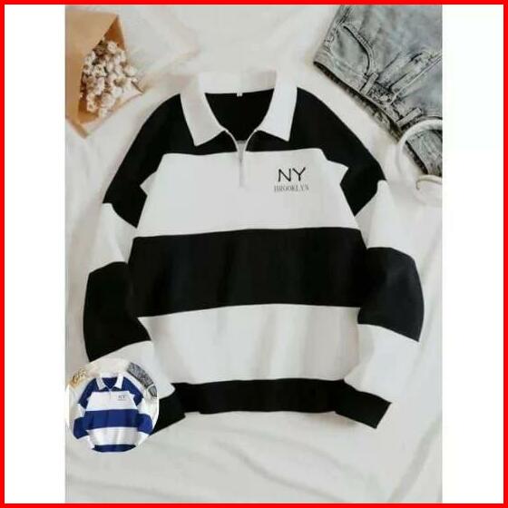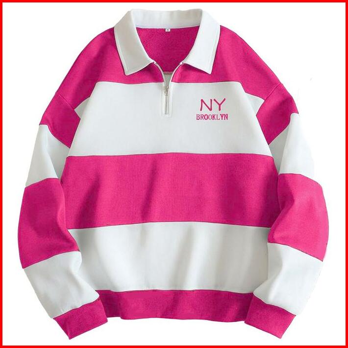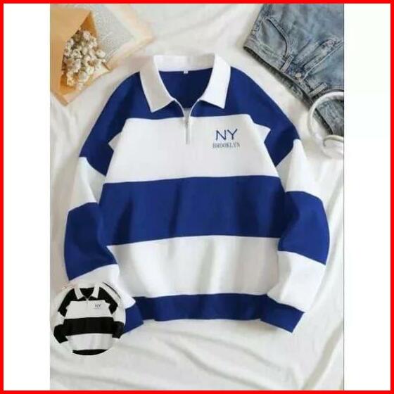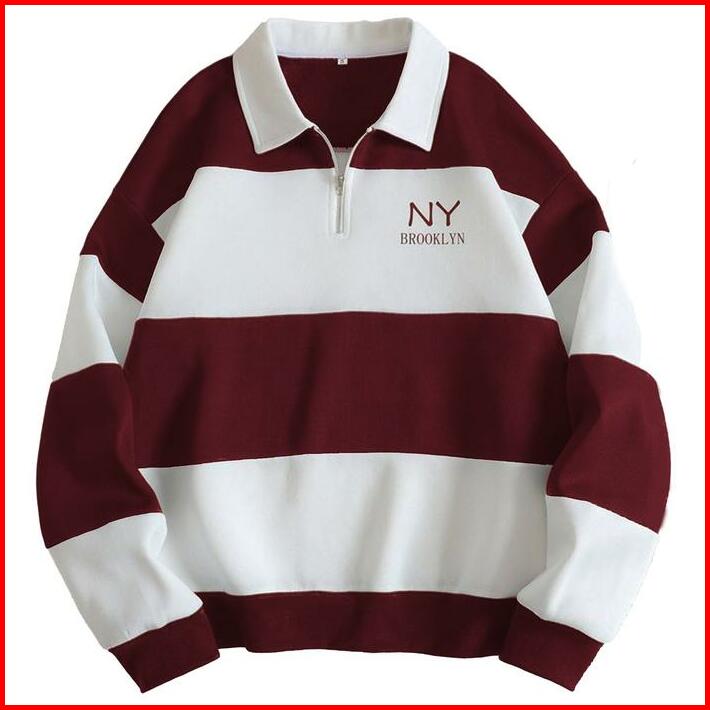 Sweater Rugby Hoodie Salur Terbaru Sweater Kerah Crewneck Ny Brklyn Pria Wanita Fleece Panjang Biru Hitam Navy Muda Polo