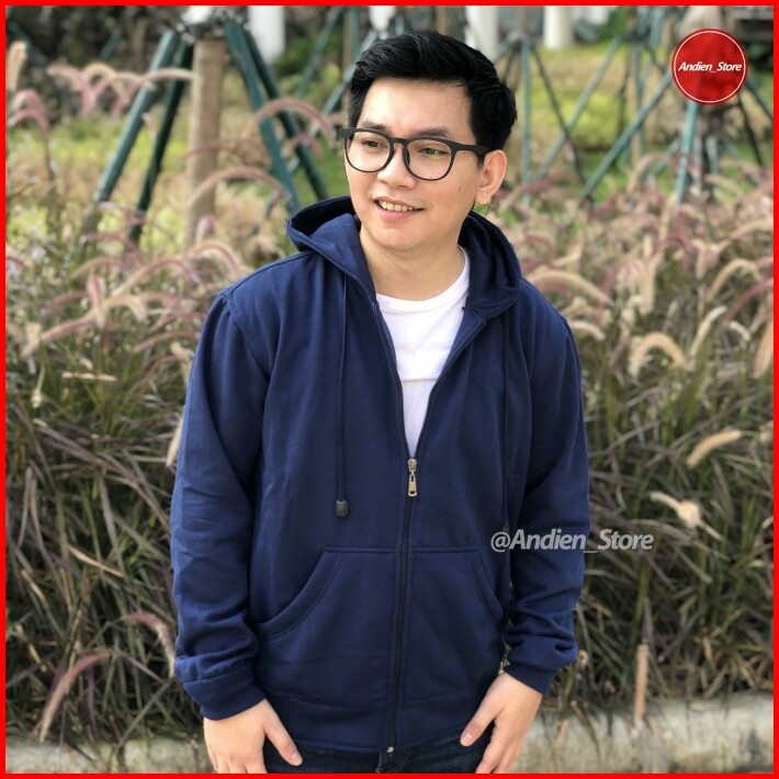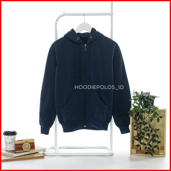 Jaket Hoodie Zipper Polos Biru Dongker Navy