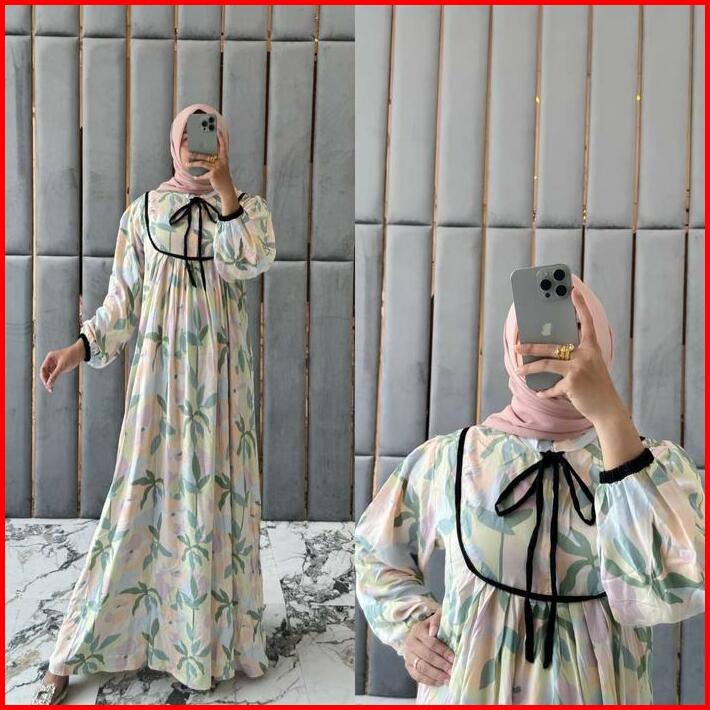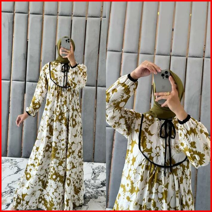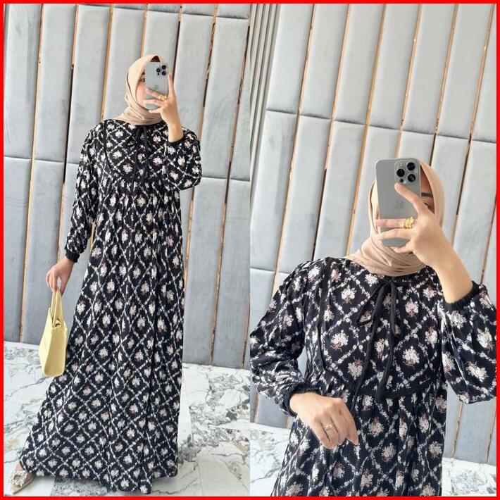 Liztya Gamis Set Hijab Bergo Jersey Bahan Rayon Motif Premium Mosa Batik