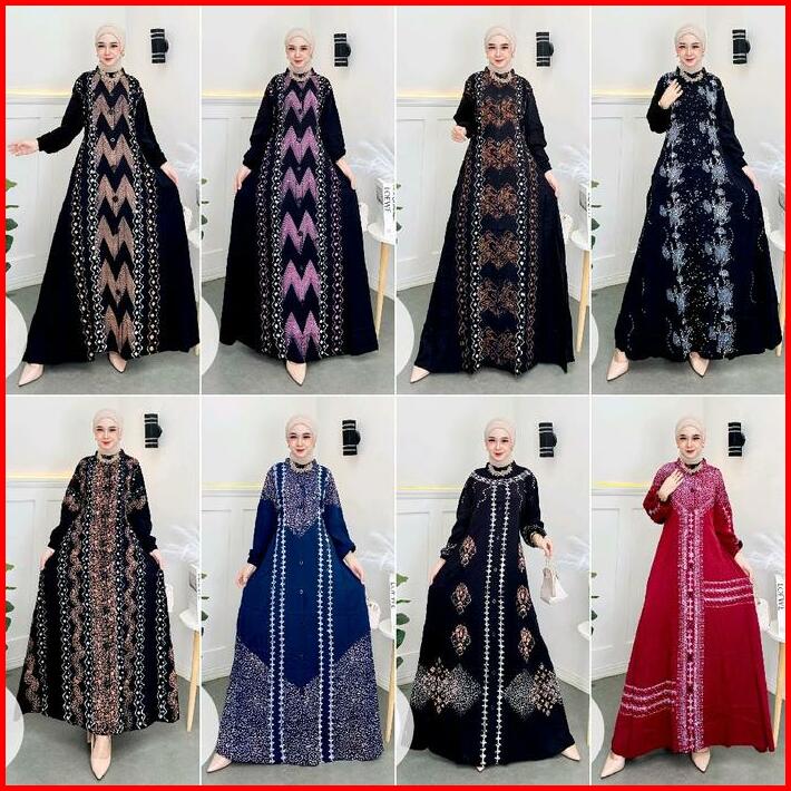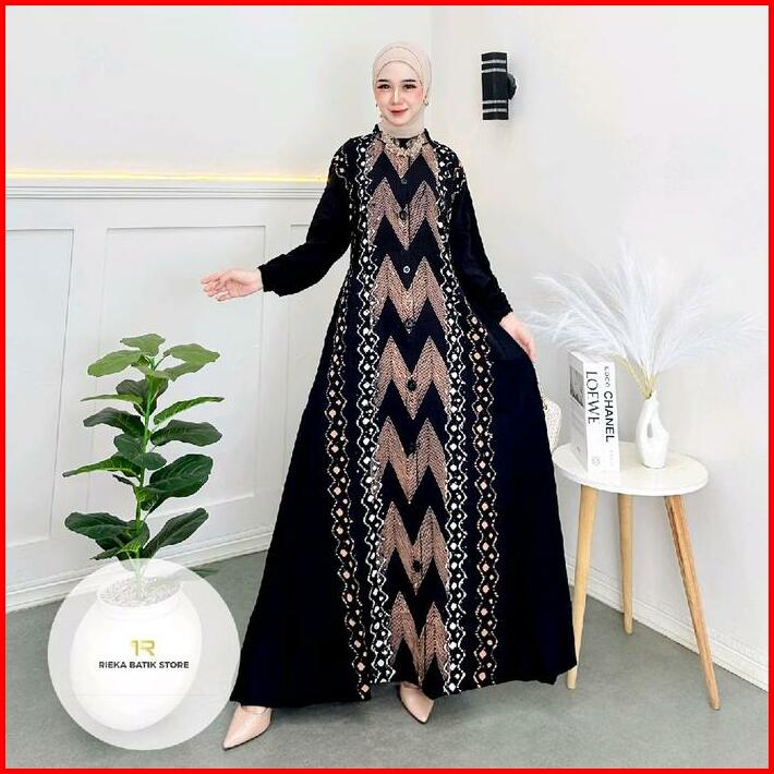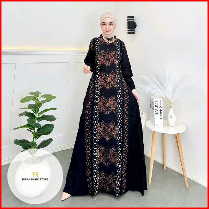 Rieka Batik-gamis Twill Ori Cantik Kancing Panjang Muslim Dress Kantong Nyaman Kain Lembut Variasi Variasi Samping Katun