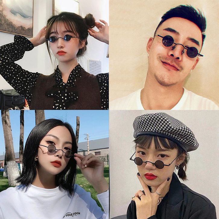Kacamata Retro Bentuk Bulat Kecil Warna Permen Bahan Metal Gaya Retro Punk Kacamata Matahari Boboho adokk