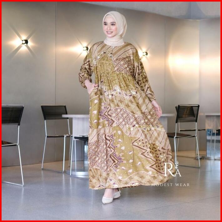Dress Susun Dewasa Motif Sahira Bahan Katun Rayon Jumbo Busui By Batik R.a Muslim Wanita Gamis Panjang Maxi