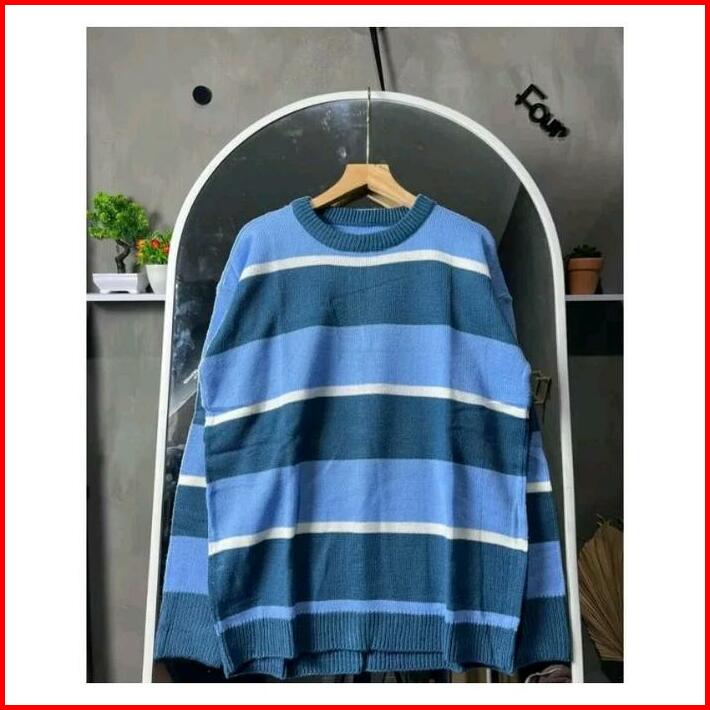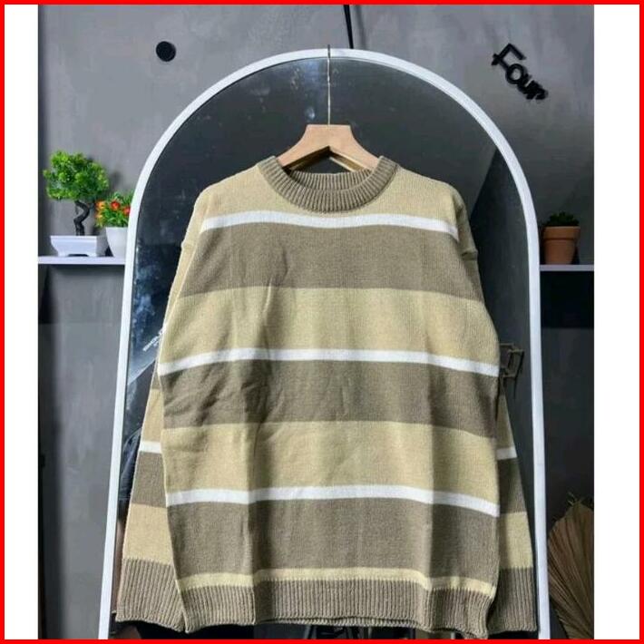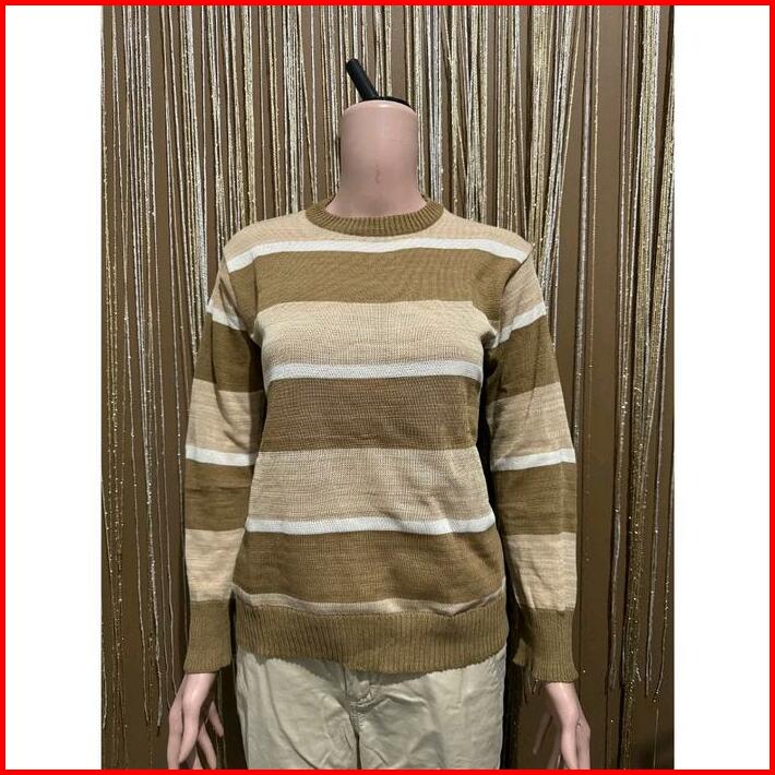 Sweter Rajut Baju Garis Korean Nyaman Panjang Sweater Tangan Knitwear Wanita Stripe