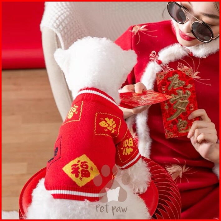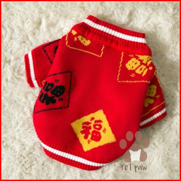 Petpaw Baju Anjing Kucing Imlek Cny Fortune Cardigan Rajut Knit Outer