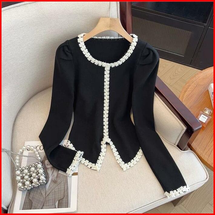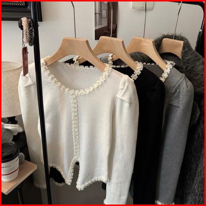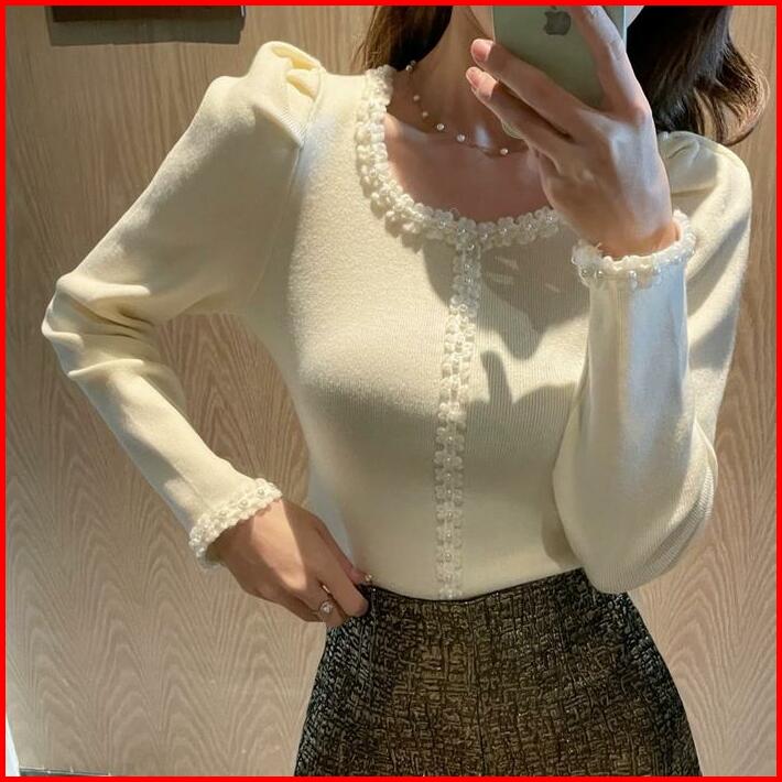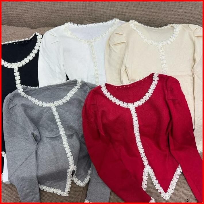Atasan Rajut Wanita Dengan Variasi Renda Mutiara Model 78132