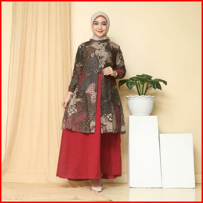Gamis Batik Modern Premium Dress Muslim Gamis Batik Kombinasi Katun Muslim